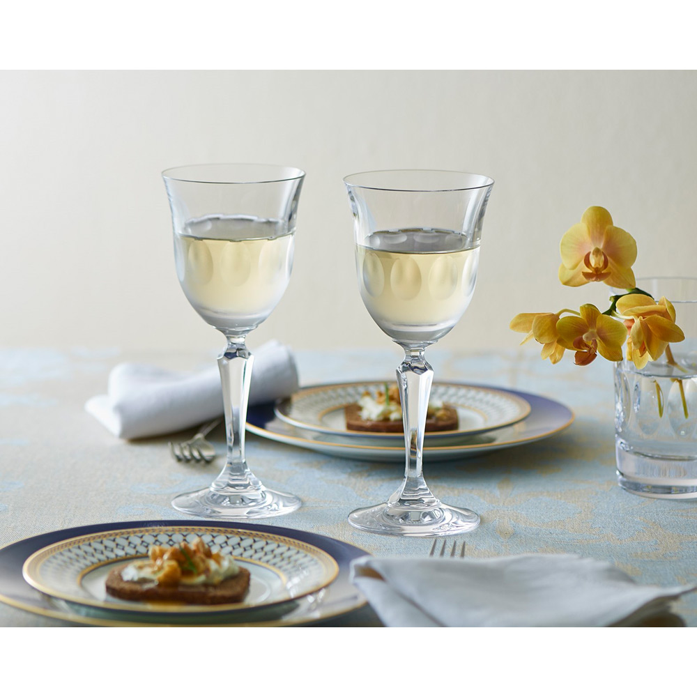 ボウルをぐるっと囲むオーバル模様はジャスパーカメオをイメージしたもので、印章(シグネット)を押したようにデザインされました。星のようにカットされた美しいステムは、テーブルセッティングをエレガントに演出します。いつもの食卓をクラスアップしてくれるグラスウェアコレクションです。
