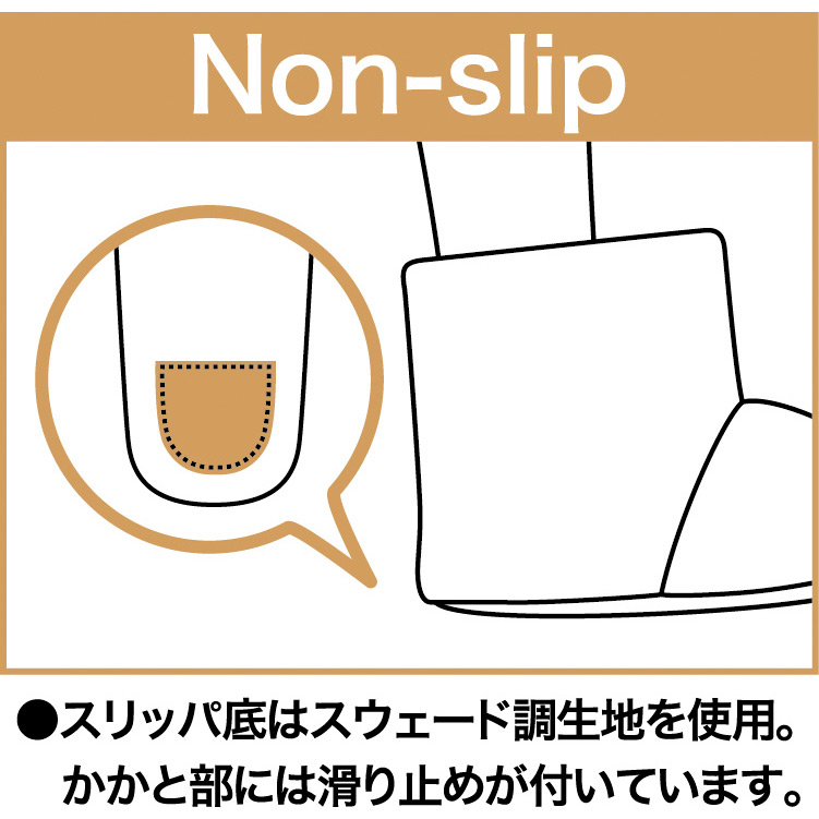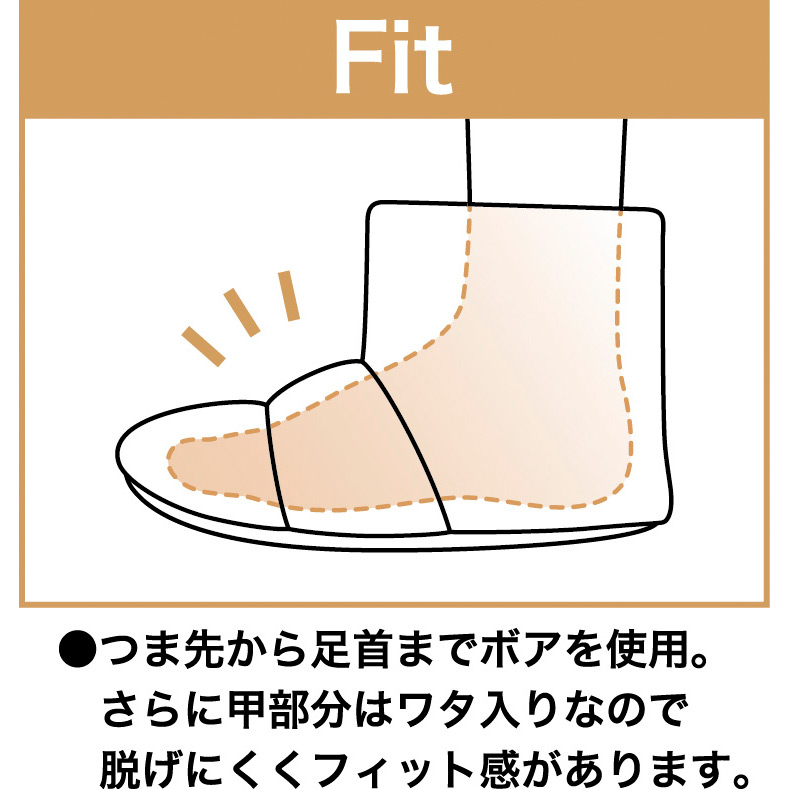 足を暖かく包み込む贅沢な履き心地です。つま先の適度な反り返りが躓きを防ぎます。ウォッシャブルタイプです。※ボアッパスリッパシリーズとはサイズ表記ごとの適応サイズが異なります。