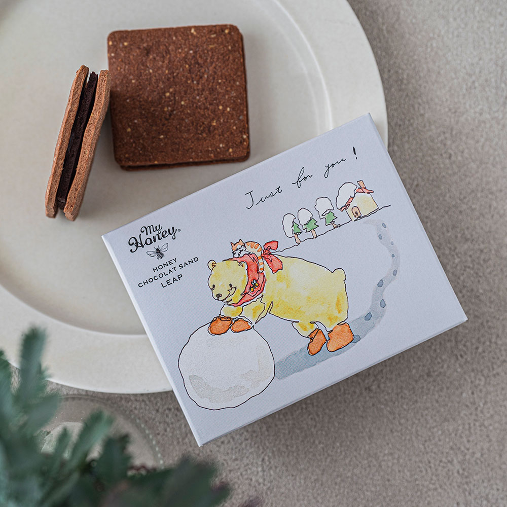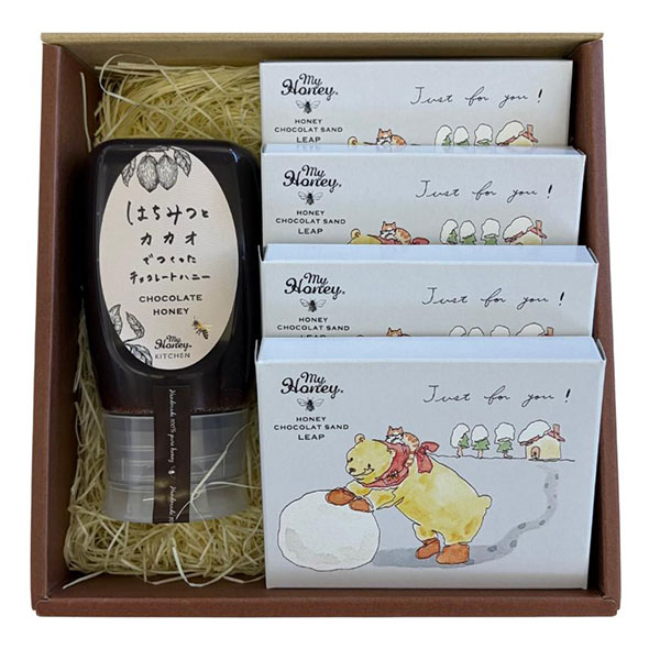 はちみつとカカオでつくったチョコレートハニー280g×1本、ハニーショコラサンドリープ1個入(冬パッケージ)×4個