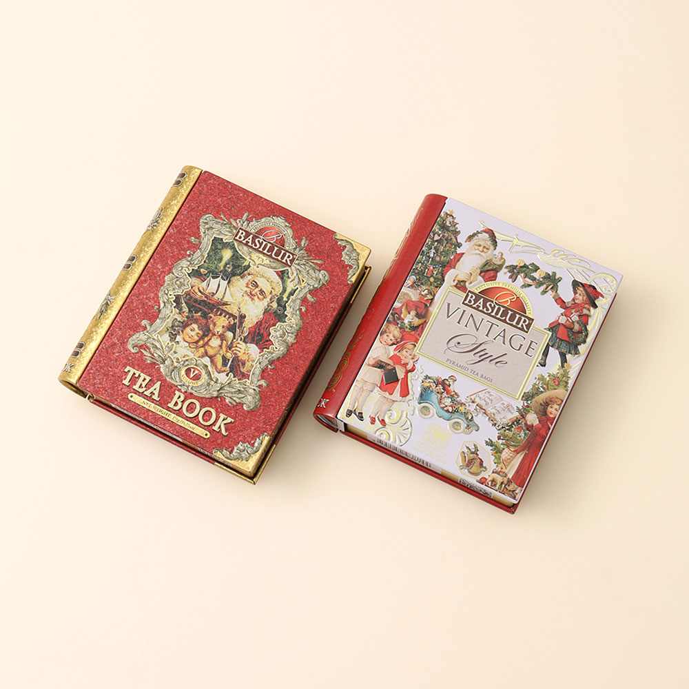 クリスマス限定 ブック型の缶入りフレーバーティーを2冊セットでお届け。