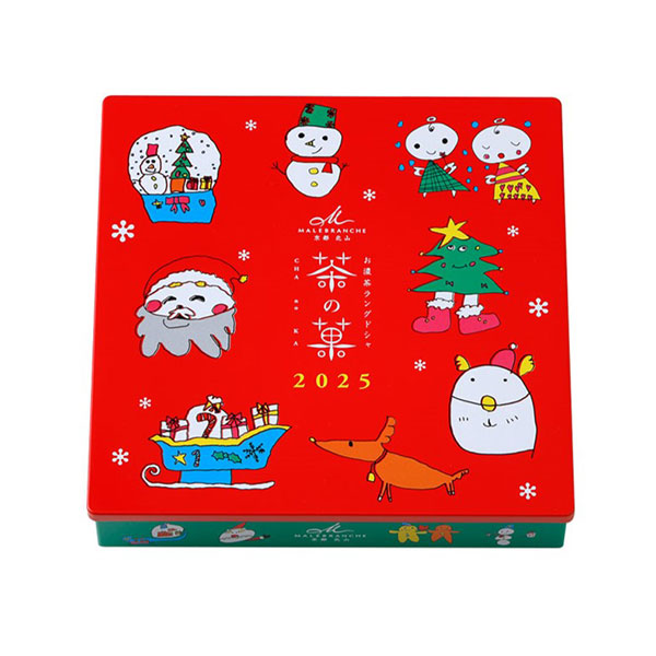 お濃茶ラングドシャ「茶の菓」が、子どもたちが描いたクリスマスの絵の限定缶で今年も登場。
