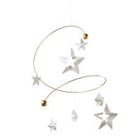 ジャズのスタンダードナンバー「フライ・ミー・トゥー・ザ・ムーン(Fly Me to the Moon)」からインスピレーションを受けて作られたモビールです。両端に金色の球体のついた真鍮製の軌道を中心に回転します。星のまん中には小さな星が形作られて立体が立ち上がり、美しい陰影をつくっています。ゆったりと動きながら、様々な表情を見せてくれます。冒頭の 「Fly me to the moon and let me play among the stars...」(私を月まで連れて行って、星々の間で遊ばせて)を聴きながらモビールを眺めれば、まるでその光景が浮かび上がってくるかのようです。はるか遠く、月や星々へのイマジネーションの旅をどうぞお楽しみください。1953年、創業者クリスチャン・フレンステッドが娘の洗礼式のために作った「3羽のコウノトリのモビール」から始まったブランド。1982年に息子オーレが事業を継承し、デンマーク・フュン島で職人が一つひとつ丁寧に制作。現在は250種以上のデザインを展開し、70年以上にわたり世界中で愛され続けています。