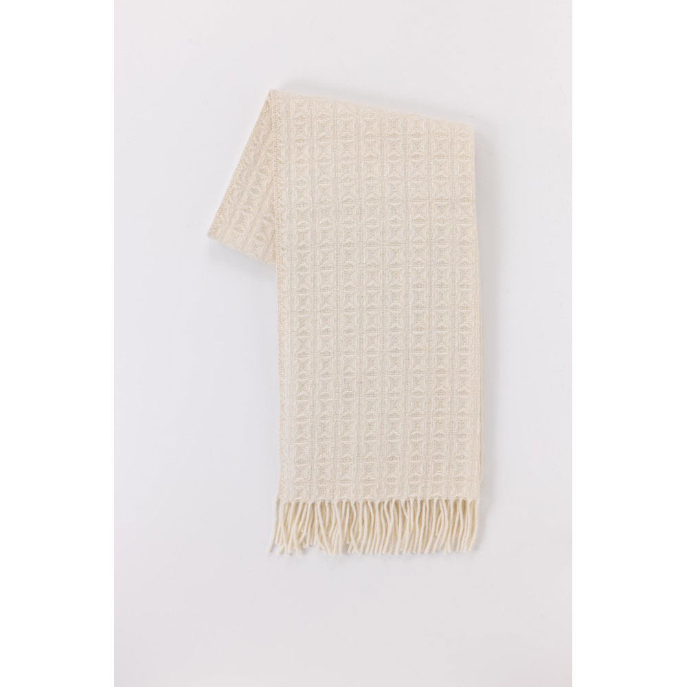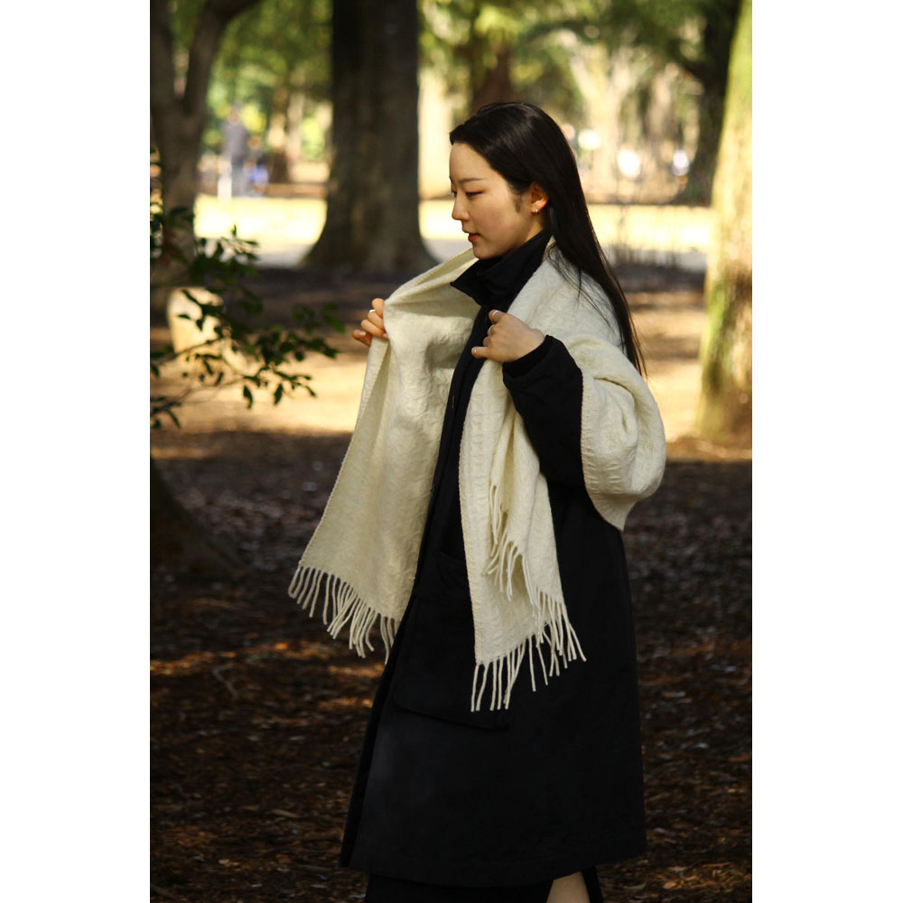 洗練されたホワイトカラーは、顔色をぱっと明るく見せてくれます。軽やかな雰囲気のスローは、春先まで長く使えるアイテムです。マフラーのように首元の寒さ対策にはもちろん、さっと羽織ったりひざ掛けとしても。