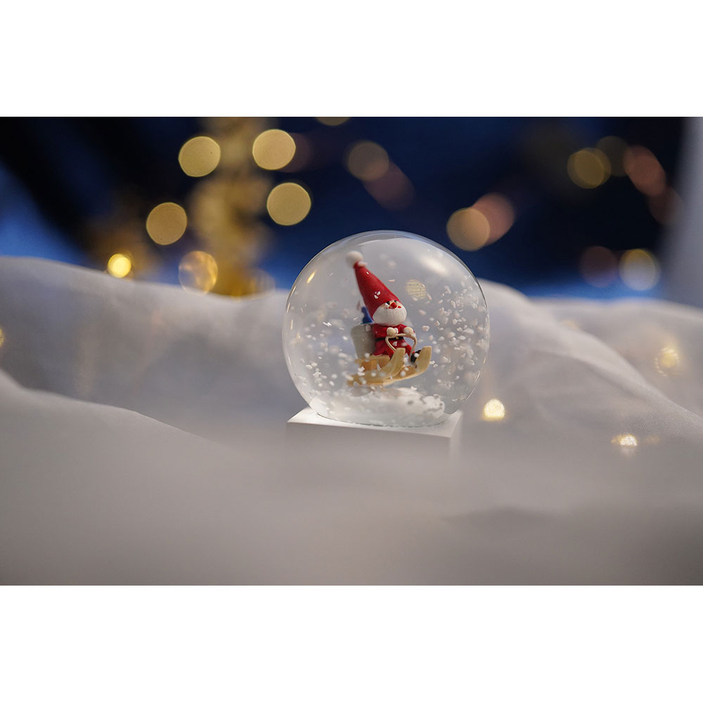 そりに乗ったニッセが、雪の中へ飛び立つ瞬間をぎゅっと閉じ込めたミニサイズのスノードーム。細かいところまで丁寧に作られたニッセの姿に、思わずじっと見つめたくなります。ドームをやさしく揺らすと、真っ白な雪がふわっと舞い上がり、冬の空気がそっと広がります。手のひらサイズで飾りやすく、クリスマスの贈りものにもおすすめです。
