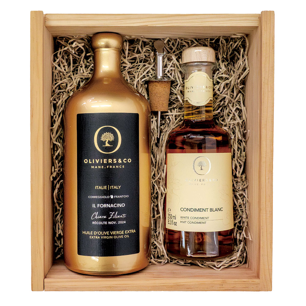 豊かなトスカーナの自然と伝統が息づく「ラモドールコレクション」より、特に人気を誇るエキストラバージンオリーブオイル『イル フォルナチーノ』と、料理に上品な甘みと奥行きを添えるホワイトバルサミコビネガーをセットに。ギフトにもふさわしい、上質な美食体験をお届けします