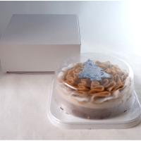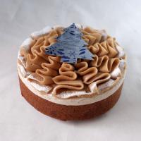 【冷凍便でお届けします。解凍まで時間がかかりますのでご注意ください。】チョコレートのアーモンドスポンジにカシスジャムとバニラクリーム、マロンシャンティクリームを重ね、マロンクリームを絞りました。