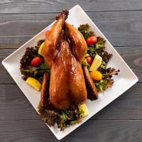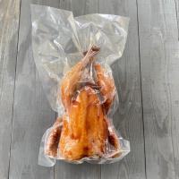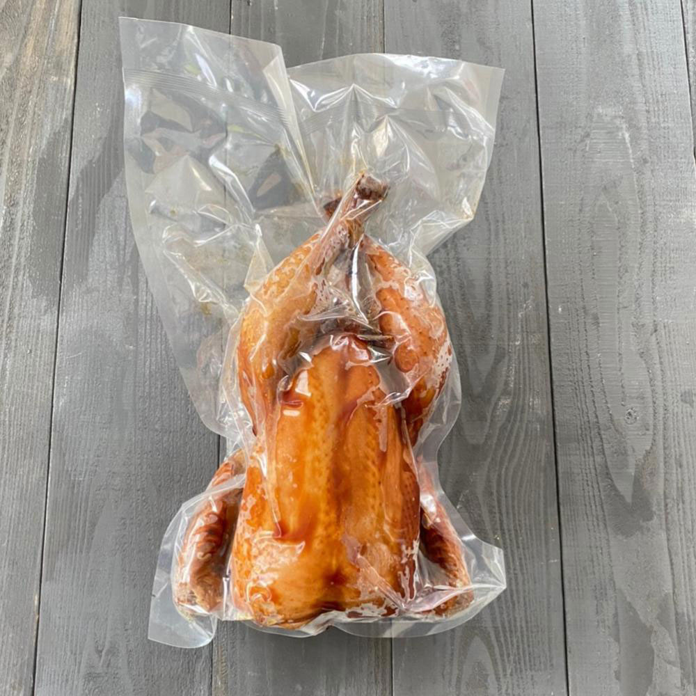地鶏丹波黒どりの丸鶏を贅沢に1羽まるごと焼き上げたボリューム満点の商品。しっとりなめらかな肉質と、香ばしい香りが食欲をかりたてます。クリスマスだけでなく、アウトドアシーズンのBBQにもぴったり。包丁はもちろん、手で簡単に解体することができます。