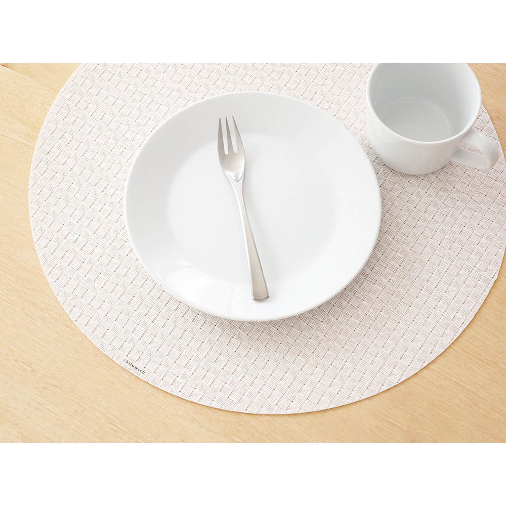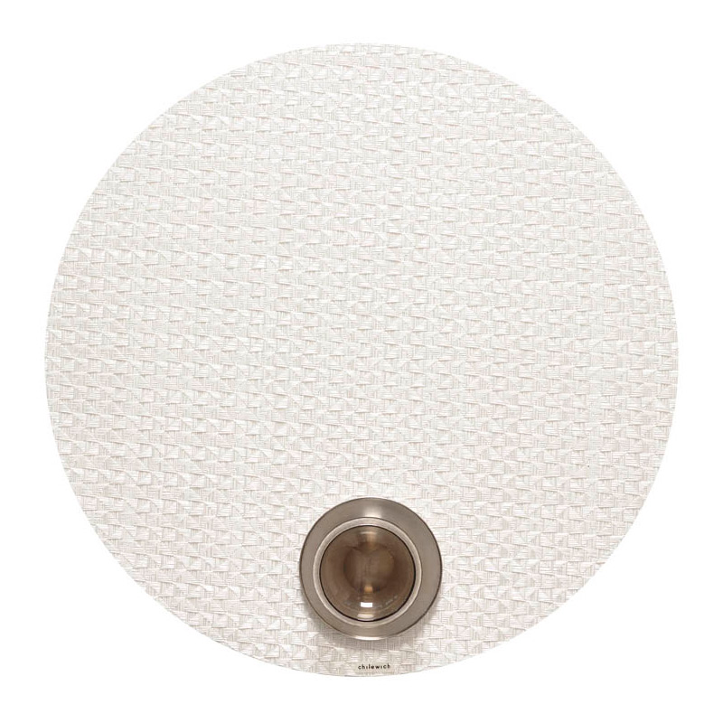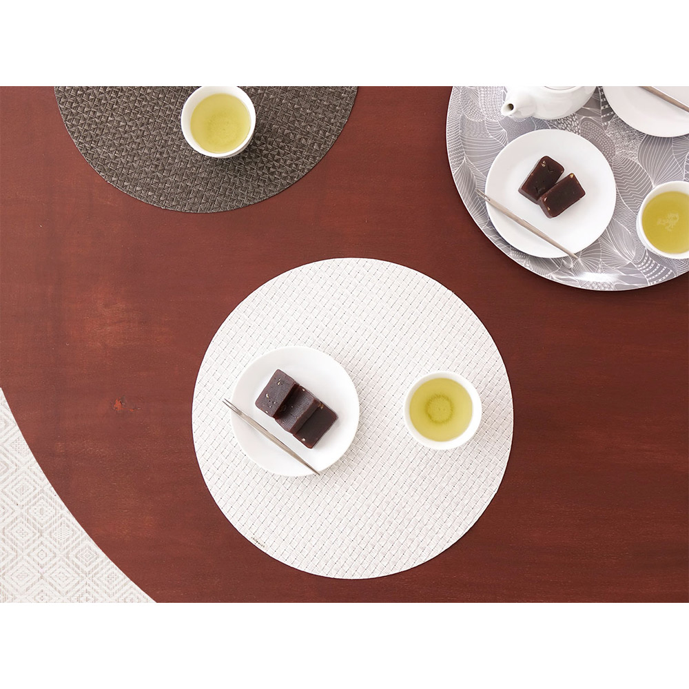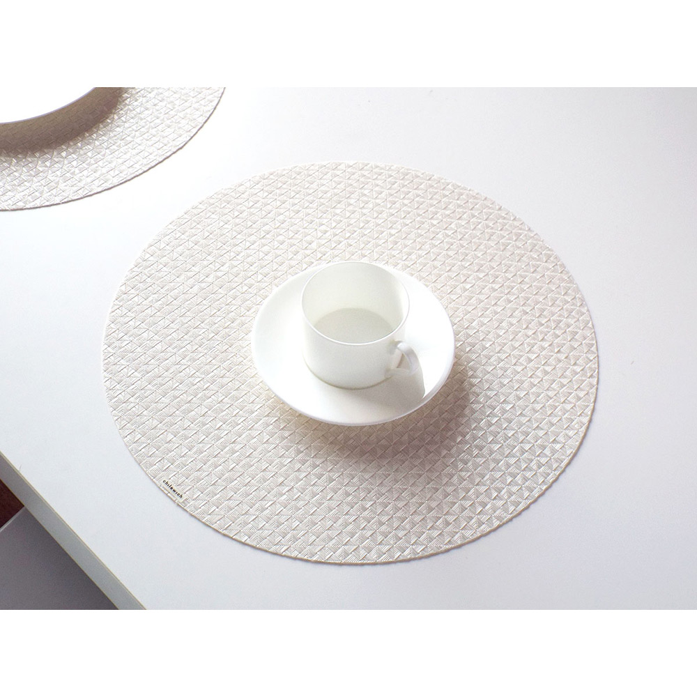 テクスチャーとパターンの融合から生まれた、控えめで優しくきらきらと光る多面体による幾何学デザインで、柔らかいホワイト色。朝食、カフェタイムやワンプレートの食事、円形テーブルに使いやすいサイズ感です。