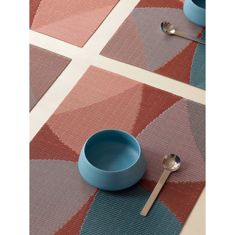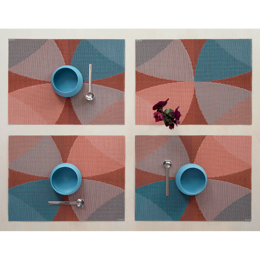 天蓋を意味するキャノピーは楕円形を重ねることでデザイン設計され、ランチョンマットサイズにカットするとマルチトーンの花びらに様変わりします。落ち着いた色彩豊かな配色は秋冬のテーブルスタイリングのアクセントに。