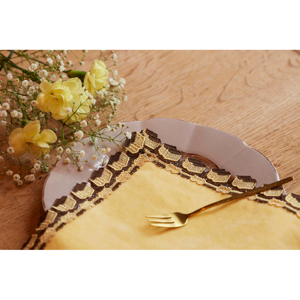 福砂屋の創業400周年を記念して、老舗レースブランドとのコラボレーショングッズをご用意しました。1901年(明治34年)に絹の輸出商として創業した横浜元町の老舗レースブランド・近沢レース店。レースや刺しゅうの美しさを伝えるべく、世界各地から最適な技術を選択、融合し独自の商品を手掛けています。福砂屋オリジナルのレースには、お皿にのったカステラと「カステラ」の文字、さらに福砂屋の商標として親しまれている蝙蝠(こうもり)が織り込まれています。美しく繊細ながらも遊び心のあるハンカチは、日々の生活を彩り、会話のきっかけ作りにもぴったりです。