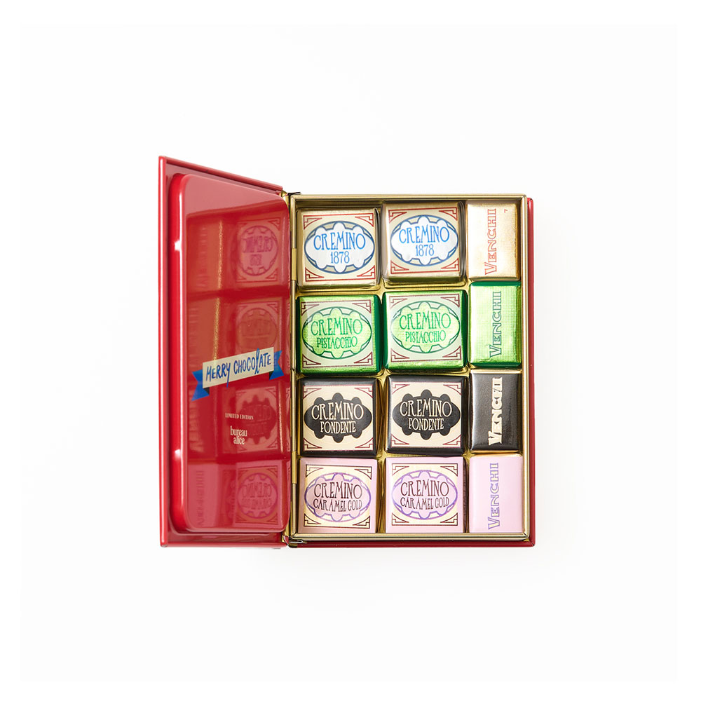 鮮やかなレッドの表紙にクリスマスツリーを描いたギフト缶は、ホリデー気分を盛り上げてくれます。3つの層が特徴的なイタリア伝統のチョコレート「クレミノ」4種類をアソートしました。口を閉じたまま味わい、フレーバーが口いっぱいに広がってゆくのを楽しんでいただきたいチョコレートです。ウィンターコレクション2025は「魔法」と「アート」がテーマ。世界的なアーティストAlice Bureauのイラストで彩られています。ミニマルでありながら生き生きとしたタッチ、繊細なディテールと鮮やかな色彩が生み出す、洗練された遊び心と優雅さとともに、特別なホリデーシーズンを。