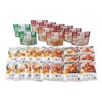 アルファ化米飯(白米)100g×6食、アルファ化米飯(五目御飯)100g×2食、アルファ化米飯(わかめ御飯)100g×2食、和風汁物(けんちん汁)250g×3食、和風汁物(豚汁)250g×4食、和風惣菜(筑前煮)200g×4食、和風惣菜(肉じゃが220g×4食、和風汁物(きのこ汁)250g×3食)、スプーン18本付