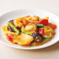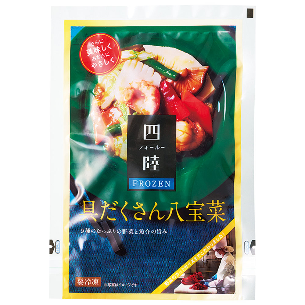 白菜といんげんは油通しすることで、野菜のおいしい食感を実現。海老、イカ、ベビーホタテ、人参、パプリカ、椎茸、筍など9種の具材が入っています。