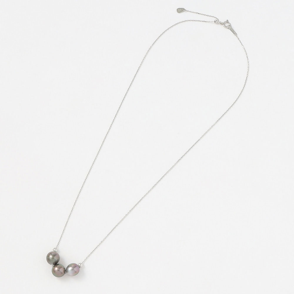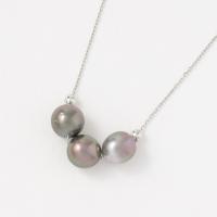 ネックレス:南洋黒蝶養殖真珠3個(約7mm珠、ブラック系、セミラウンド型)、チェーン・ミラーボール:プラチナ850約1g
