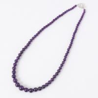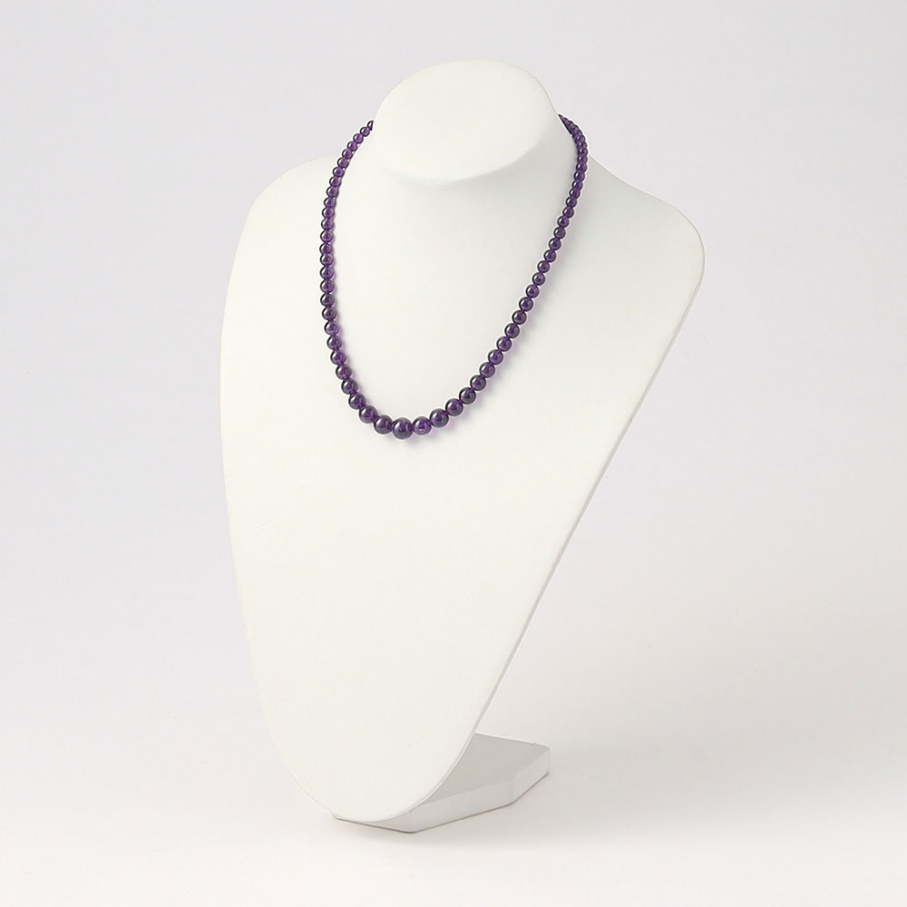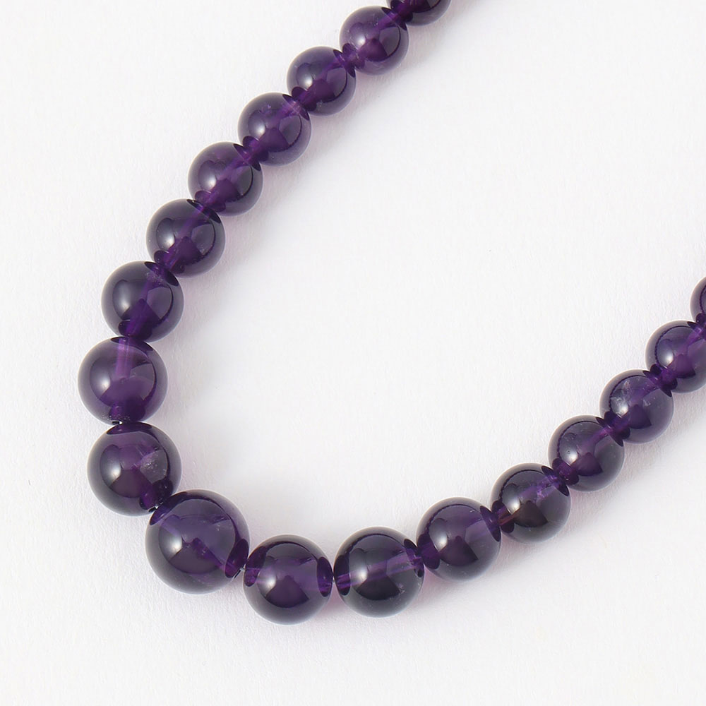 アメシストの丸珠4mm~10mmのスッキリとしたグラデーションのネックレス。淡い紫色が素敵です。