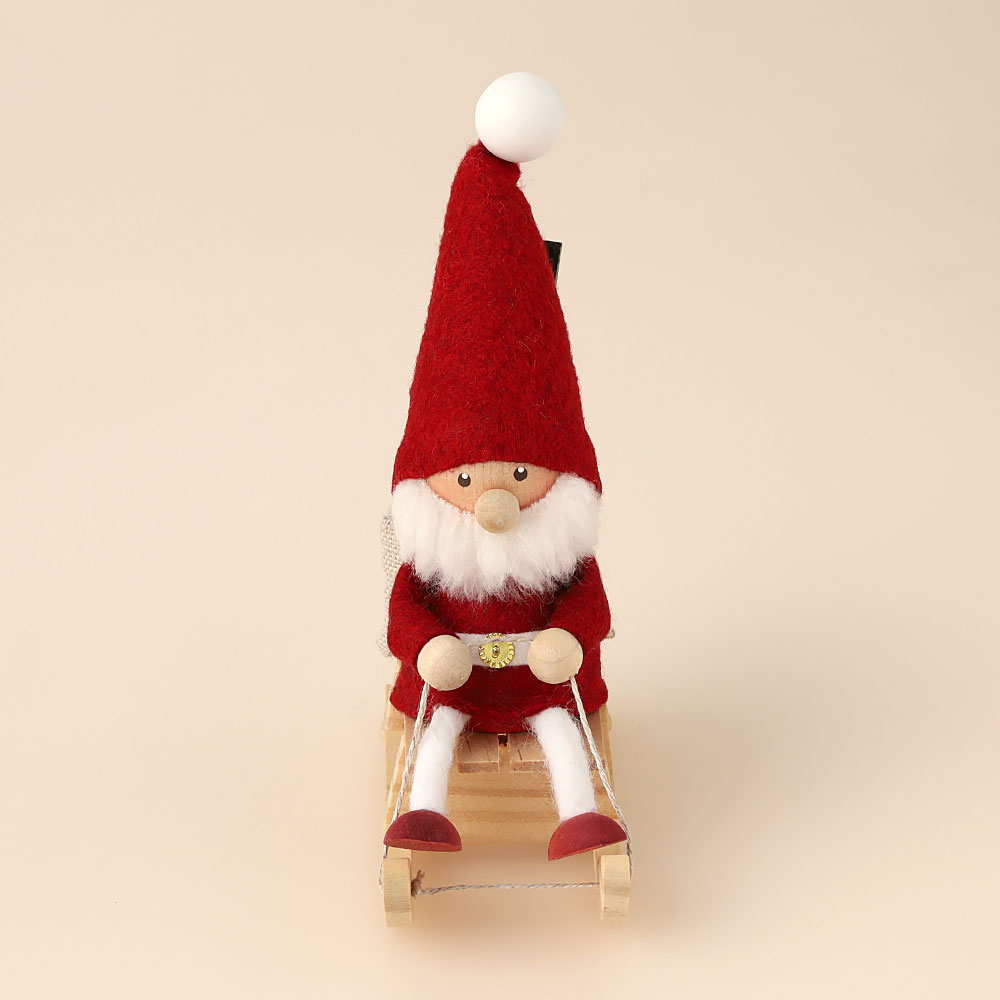 ハンドメイドの愛らしい木製人形「ノルディカニッセ」。古来よりニッセは、子どもたちや家を守り、クリスマスの時期にはサンタクロースのお手伝いをすると言われている北欧の妖精です。いたずら好きの働きもののニッセが住む家には幸せが訪れると考えられ、デンマークでは長く愛され続けています。1つ1つ職人の手仕事で仕上げられるため、それぞれが異なる表情をもっています。2024年の高島屋限定ノルディカニッセは、クリスマスツリーの飾りつけに集まった5種類のニッセ達。ツリーとオーナメントをそりに乗せて急いで運んできた赤い帽子のサンタです。2024年クリスマスの高島屋限定品です。