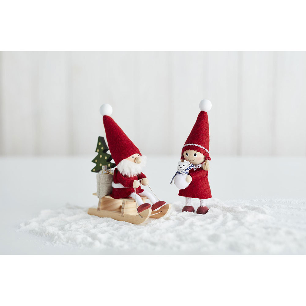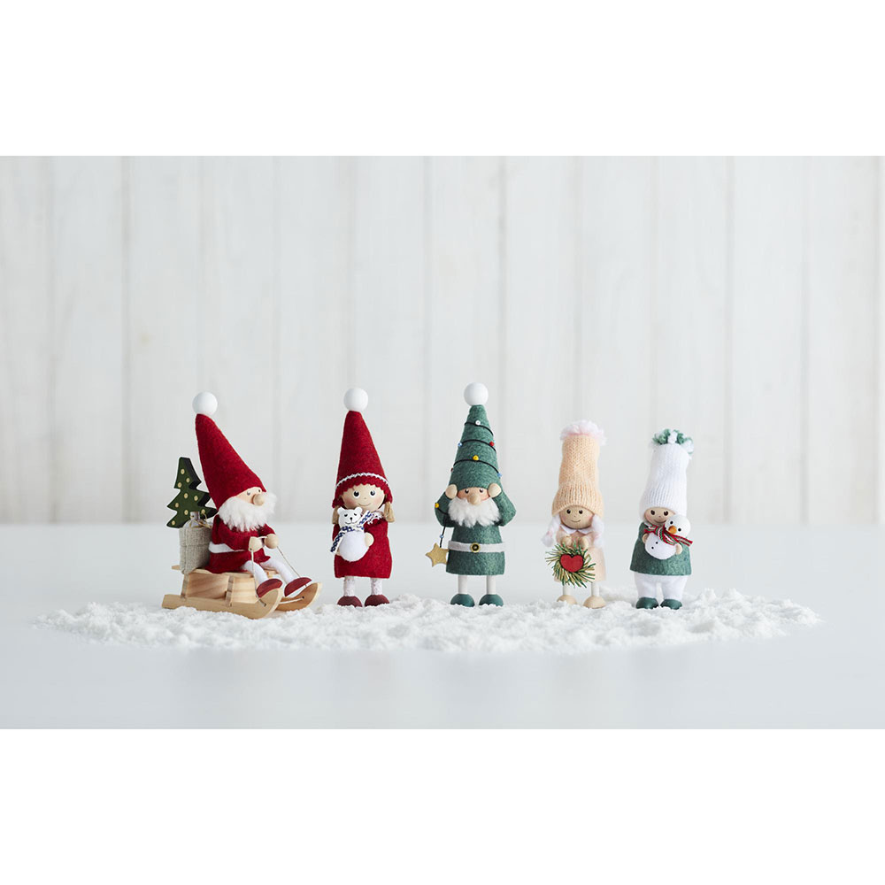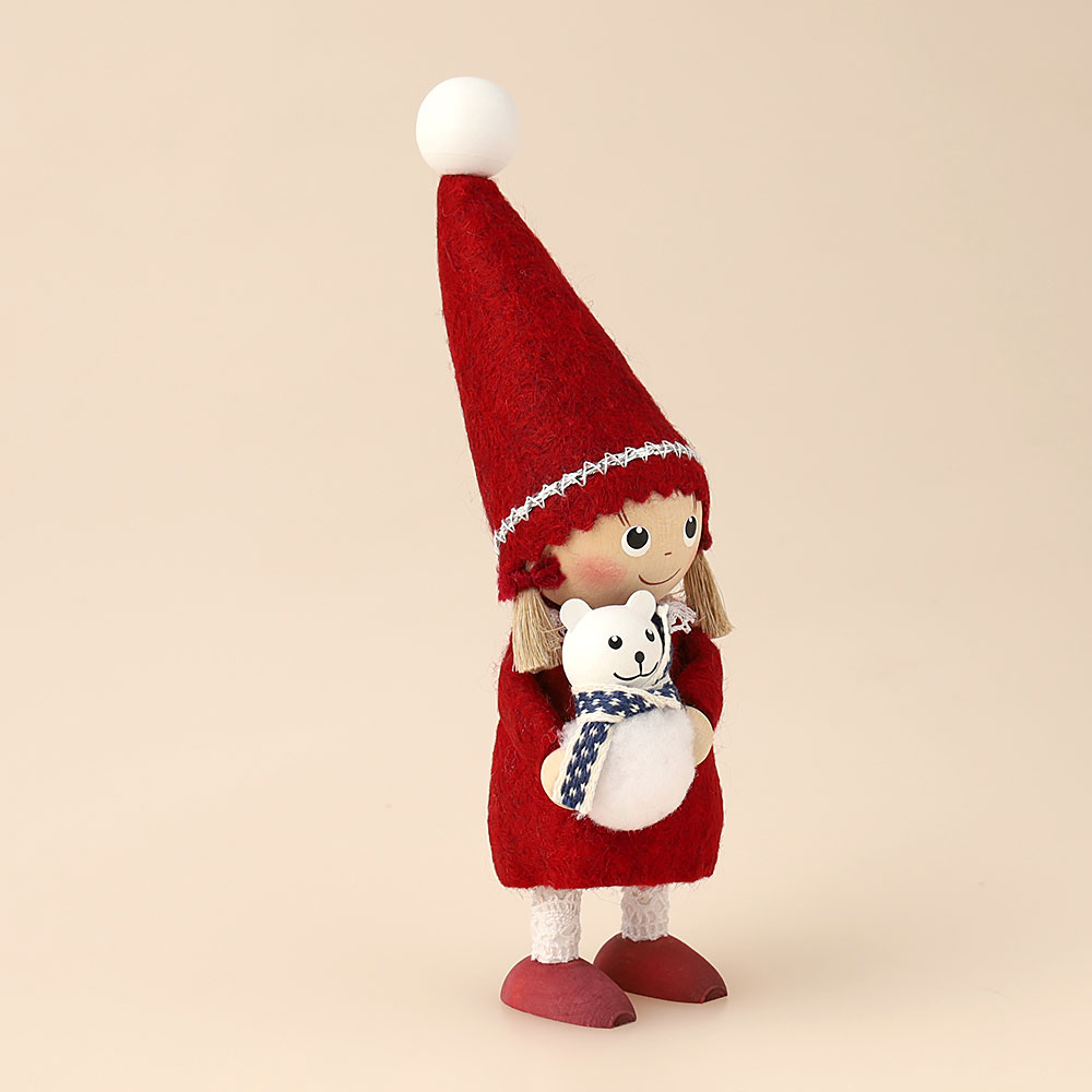 ハンドメイドの愛らしい木製人形「ノルディカニッセ」。古来よりニッセは、子どもたちや家を守り、クリスマスの時期にはサンタクロースのお手伝いをすると言われている北欧の妖精です。いたずら好きの働きもののニッセが住む家には幸せが訪れると考えられ、デンマークでは長く愛され続けています。1つ1つ職人の手仕事で仕上げられるため、それぞれが異なる表情をもっています。2024年の高島屋限定ノルディカニッセは、クリスマスツリーの飾りつけに集まった5種類のニッセ達。白くまのオーナメントを飾りつけようとしている、赤い洋服の笑顔が可愛い女の子です。2024年クリスマスの高島屋限定品です。
