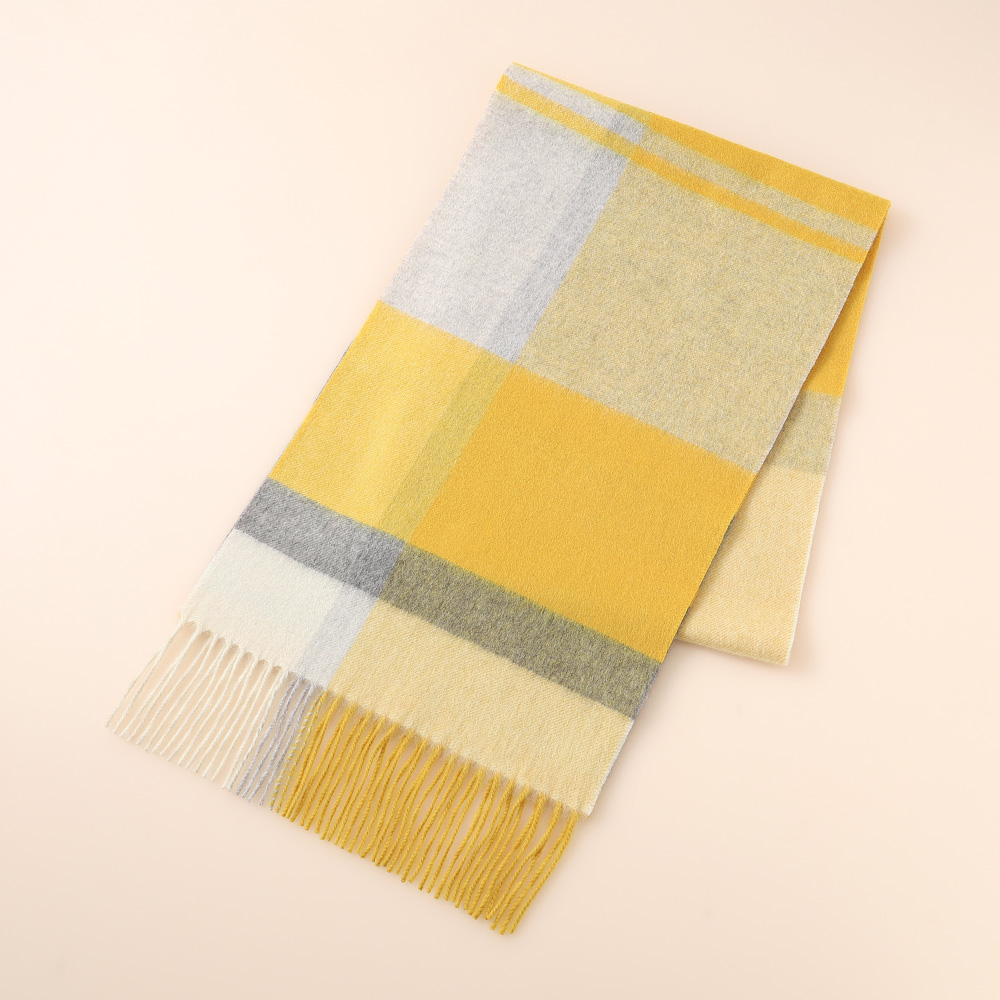 ベビーカシミヤで織り上げた、シンプルで使いやすいチェック柄のマフラーです。ベビーカシミヤならではの軽さと柔らかさが特徴です。