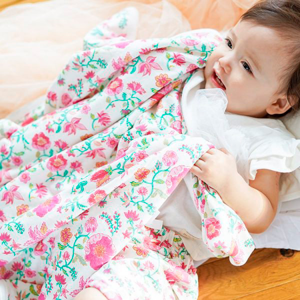 お昼寝の時の上掛けや、ベビーカーでのお出かけ時の風よけや日よけ、オムツ替えの際の下敷きなど、様々な場面で活躍する便利なブランケット。何枚あっても重宝するので、出産祝いとしても人気のアイテム。