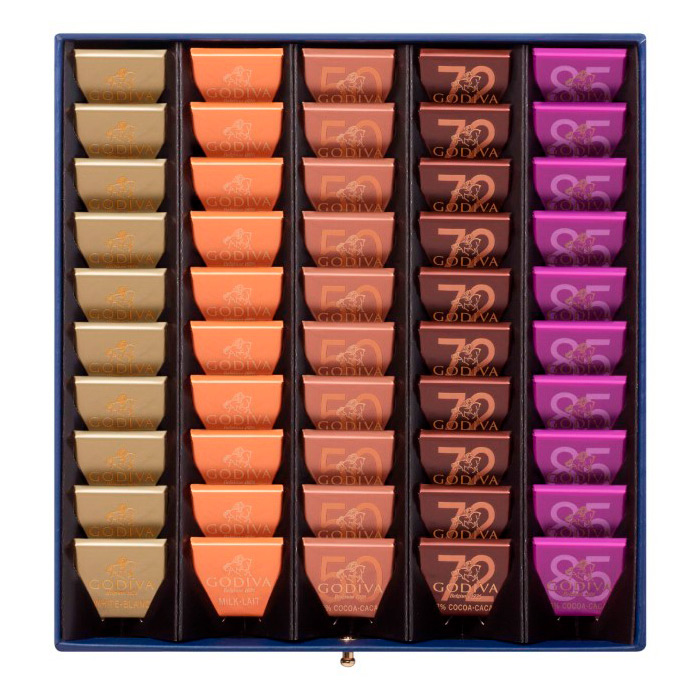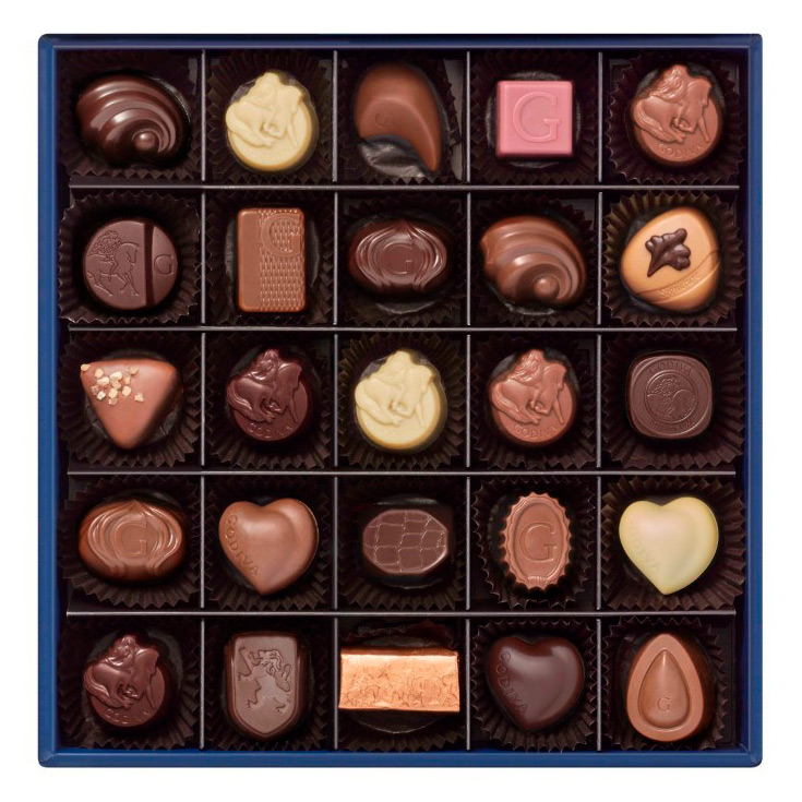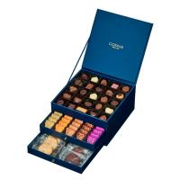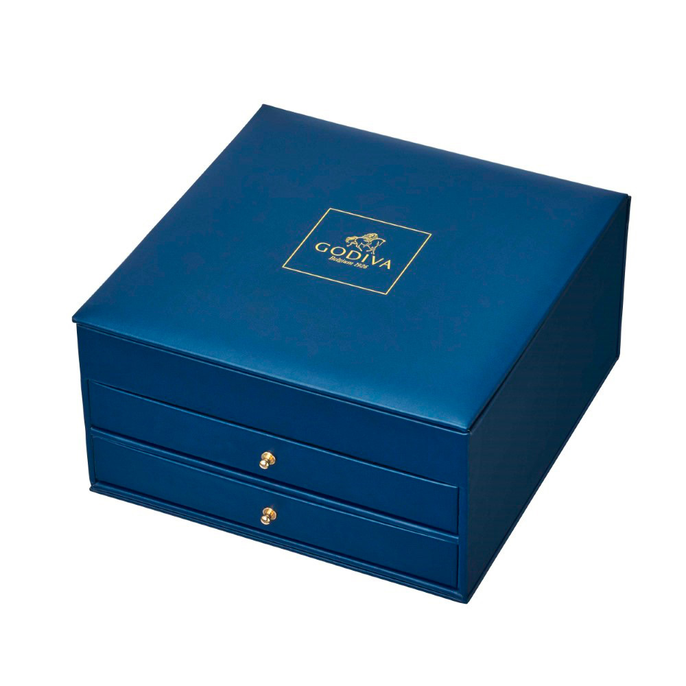 ゴディバの歴史を語るに欠かせないアートのように美しいチョコレートの数々やシンプルで繊細なカレ、ベルギー産チョコレートを練りこみ焼き上げたフールセックを、シンプルながらもゴージャスに仕上げたレザー風のボックスに贅沢に詰め合わせました。特別なひと箱と共に、大切な方との素敵な時間をお過ごしください。