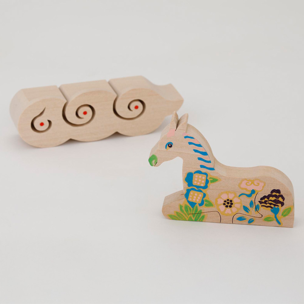 華やかな彩色の馬が雲に乗ったオーナメントは、思わず手に取りたくなる可愛さです。一つ一つステンシルと手彩色で仕上げられています。干支飾りとしてはもちろん、お部屋のインテリアとして季節を問わずお楽しみください。