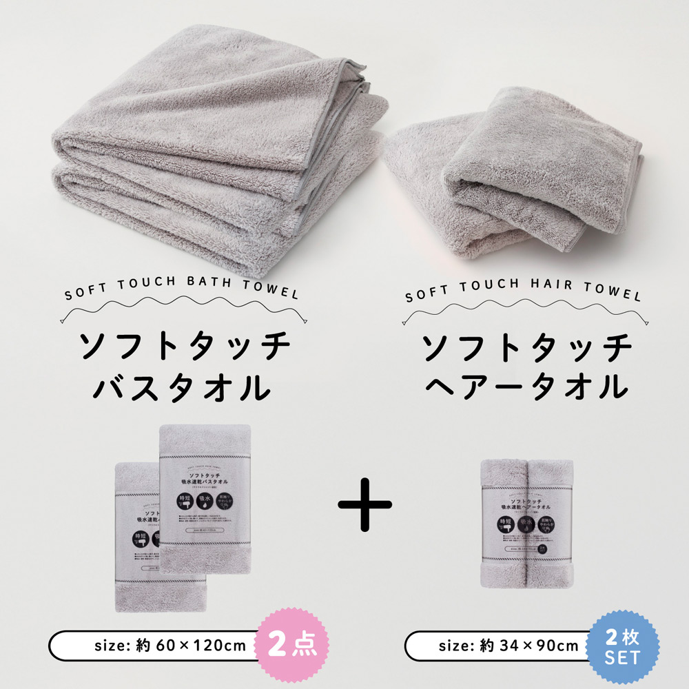 ソフトタッチ ヘアータオル2枚&バスタオル2枚セット