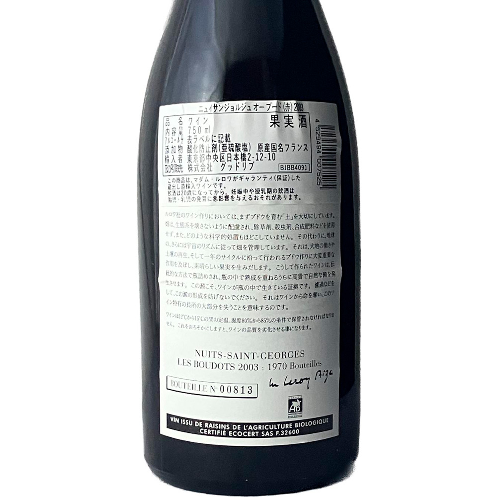 2003 ニュイ サン ジョルジュ プルミエクリュ オー ブード(赤) 750ml × 1本