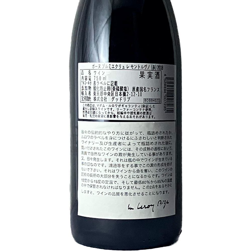 2018 ボーヌ プルミエクリュ モントルヴノ(赤) 750ml × 1本