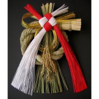 わらには、叶結びの紅白水引をあしらい、稲穂を中心に設えました