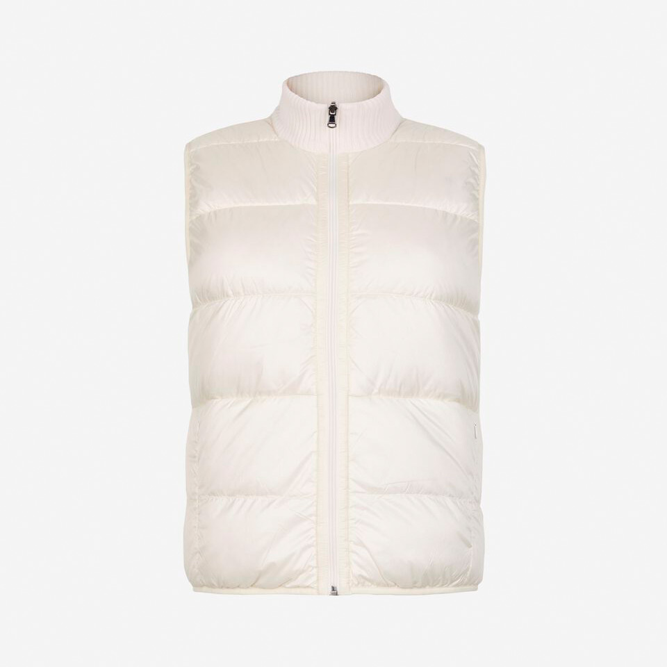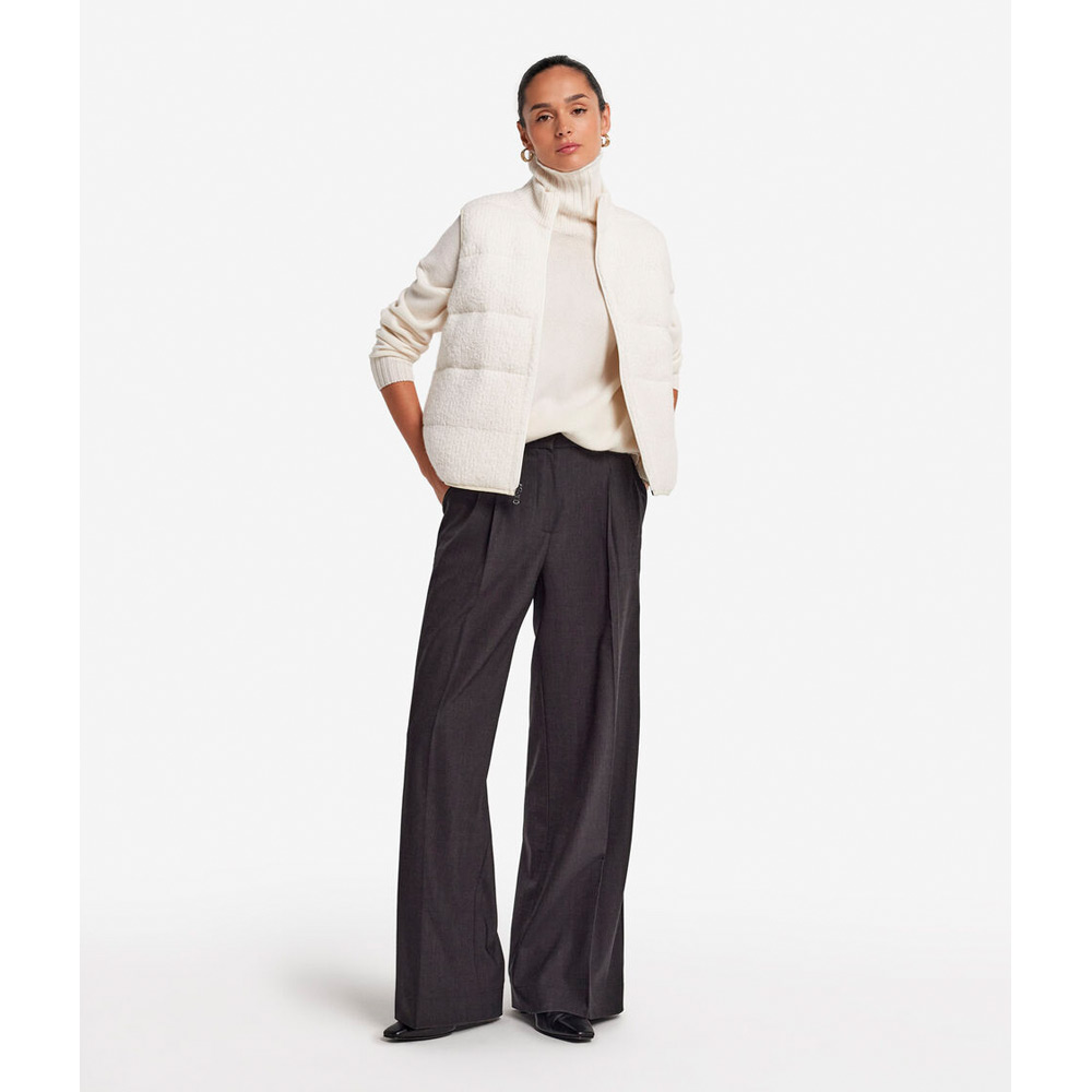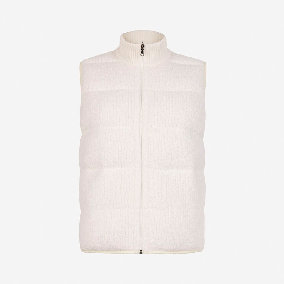 洗練されたカシミヤブークレとナイロンで作られたリバーシブル仕様のダウンベスト。場を選ばず活躍するスタイリッシュなアイテムをお探しの方に最適です。メタリックファスナーを使用した開閉部とウルトラソフトカシミヤのハイネックが心地よさと優雅な雰囲気を演出し、ヒップまでの丈とレギュラーフィットがバランスのとれたシルエットを実現します。実用的かつ洗練された、季節の変わり目を上品に演出してくれるアイテムです。