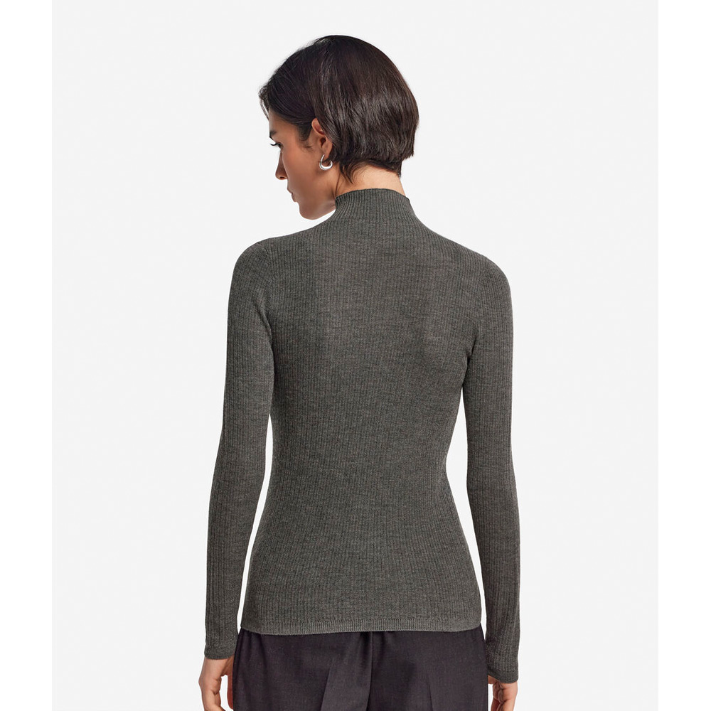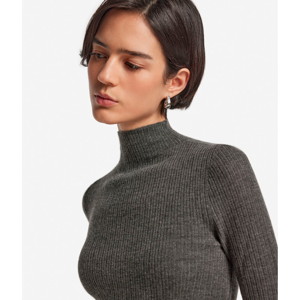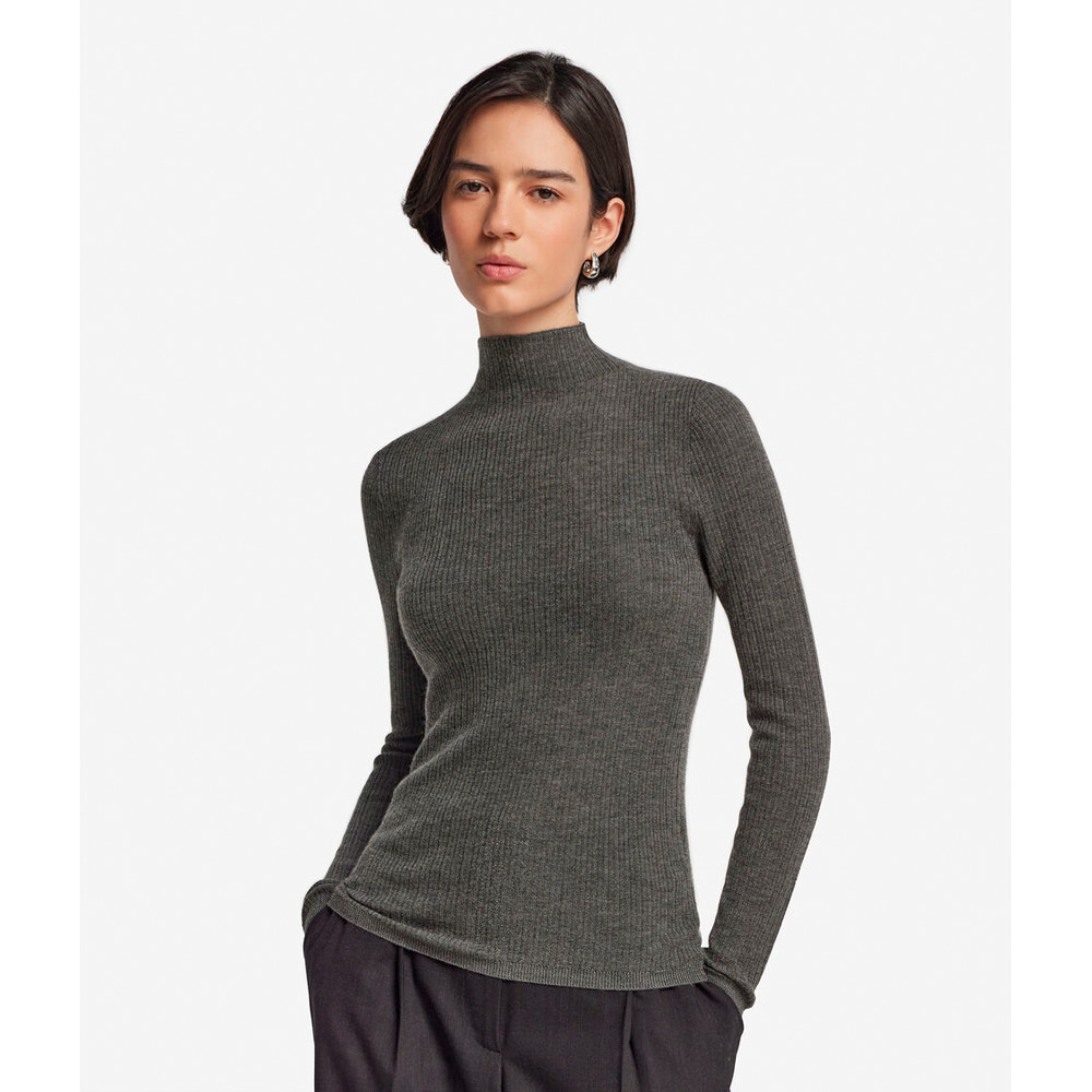 タイムレスな定番のリブ編みで作られたタートルネックセーター。柔らかく暖かく体を包み込むウルトラファインカシミヤを使用しています。肩のラインはレギュラーで、縁と袖口まできっちりと仕上げられたデザインに、テーラリング技術へのこだわりが光る一枚。優雅なシルエットを演出する、腰丈・スリムフィットのモデルです。