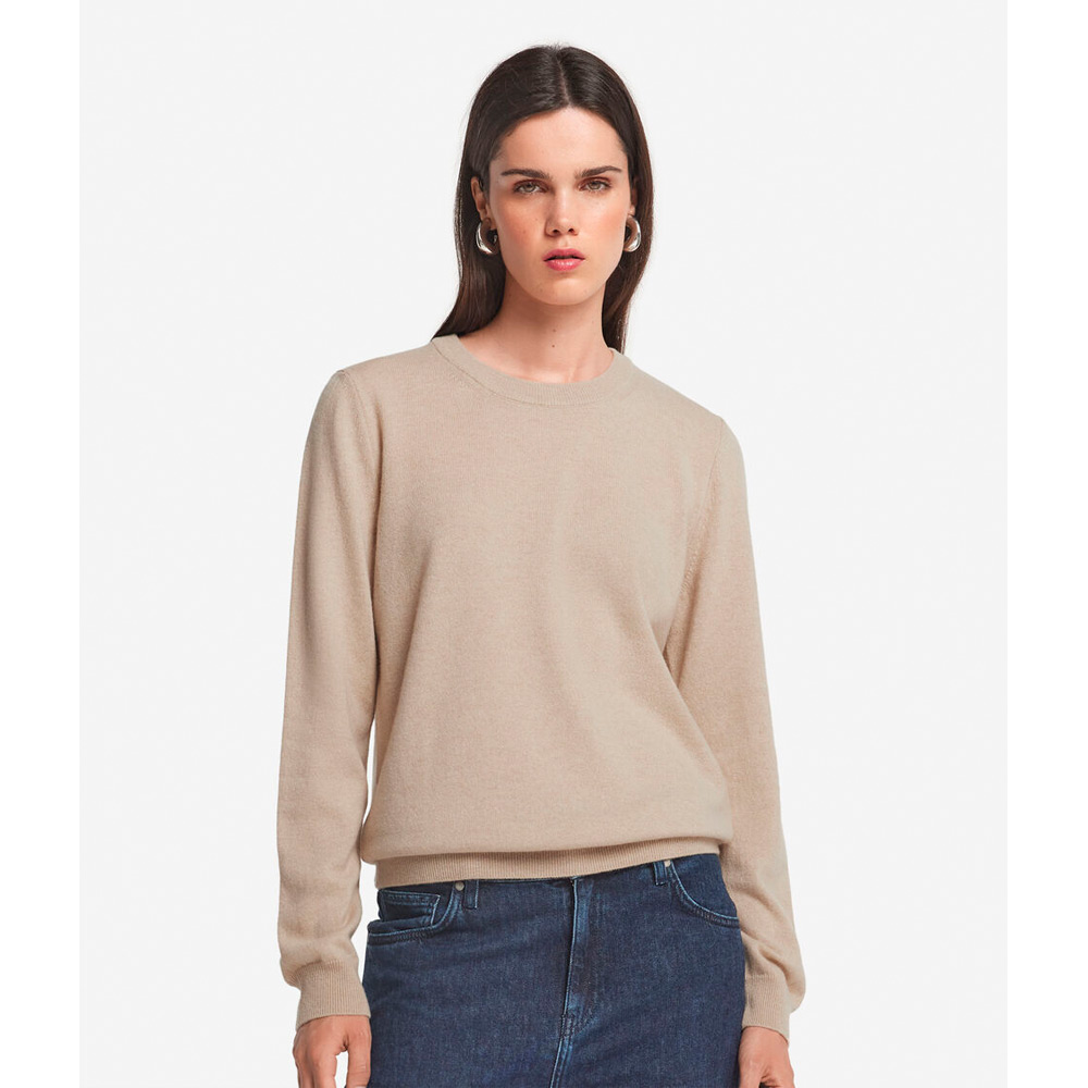 やわらかいウルトラソフトカシミヤで作られた、クルーネックのセーター。寒い日々のワードローブのキーアイテムとなる一点です。 裾、袖口とネックラインはリブ編みで仕上げ、洗練されたタッチをプラスしています。体のラインをやさしく包み込むレギュラーフィットのアイテムで、カジュアルシックな装いに最適です。