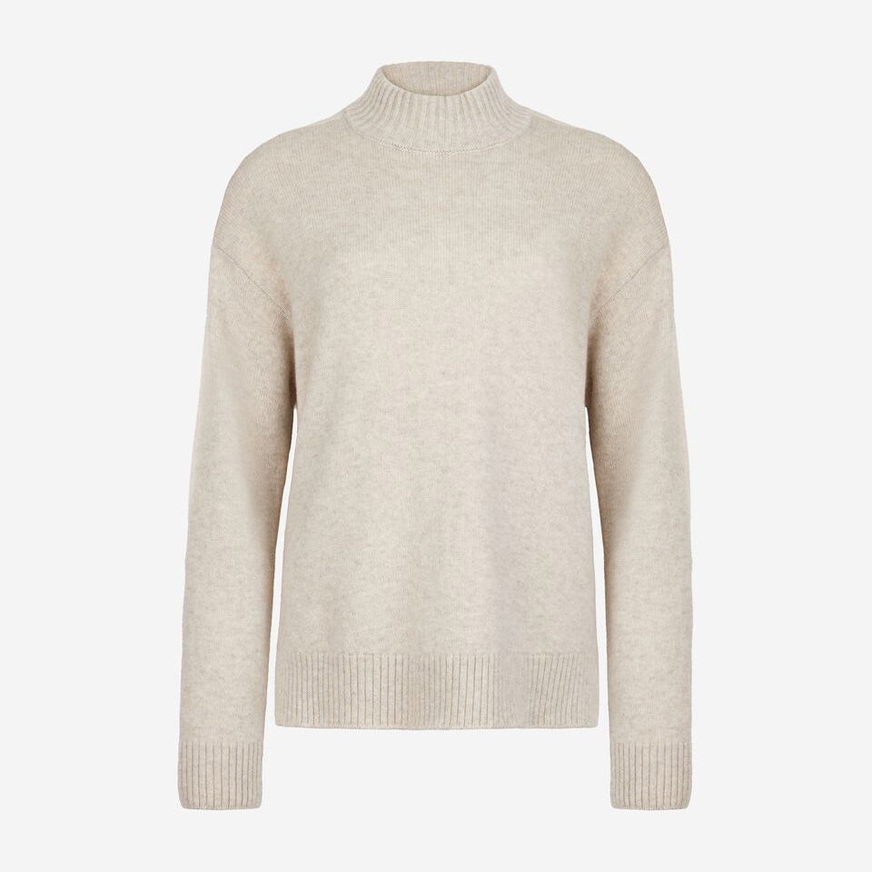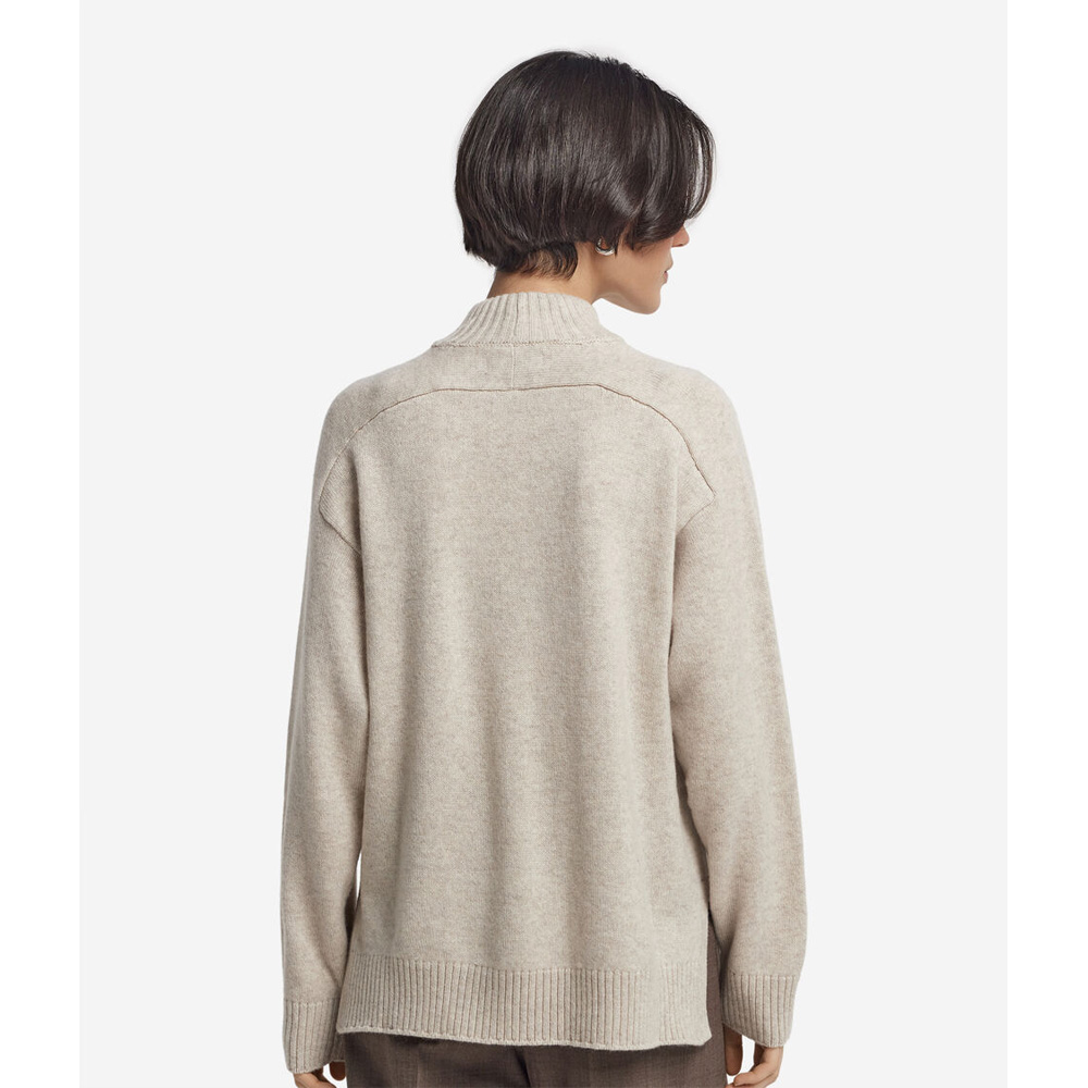 高級ヤーンとフェミニンなディテールが調和の中で融合した、ウルトラソフトカシミヤ製タートルネックセーター。サドルラグランショルダーでゆったりとした着心地を強調し、インフォーマルでありながら優雅なタッチをプラスするリブ編みのトリミングで仕上げています。
