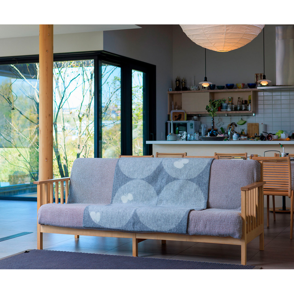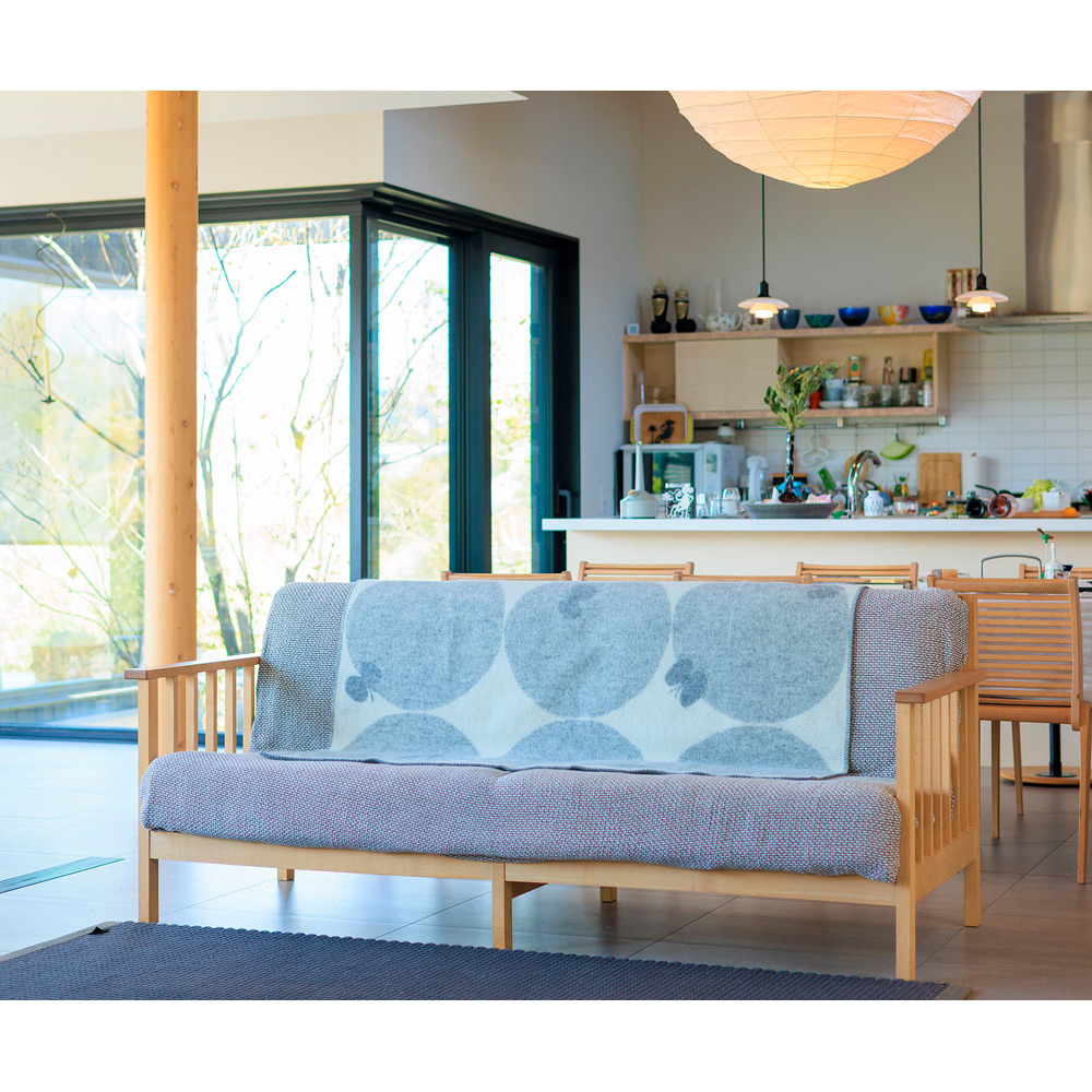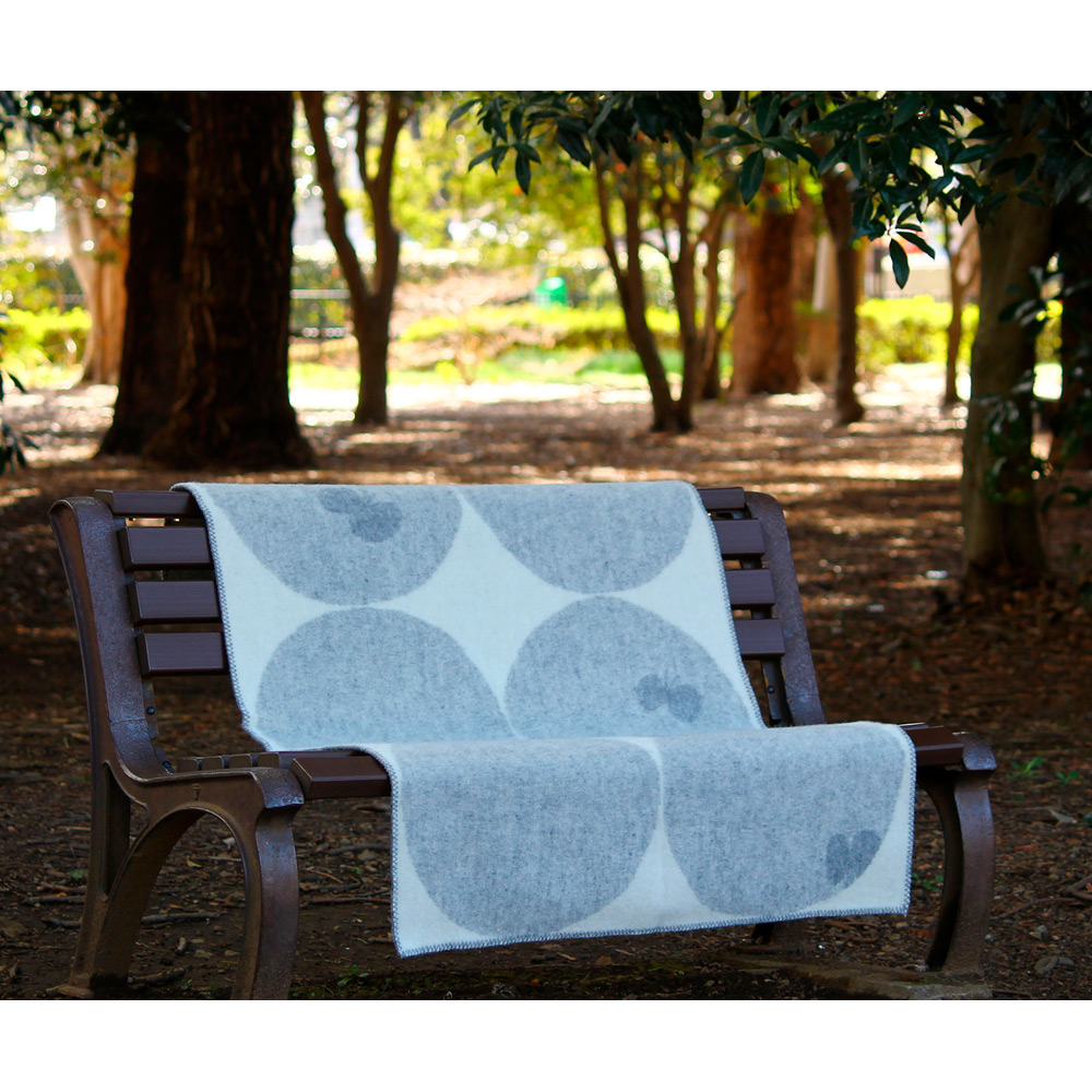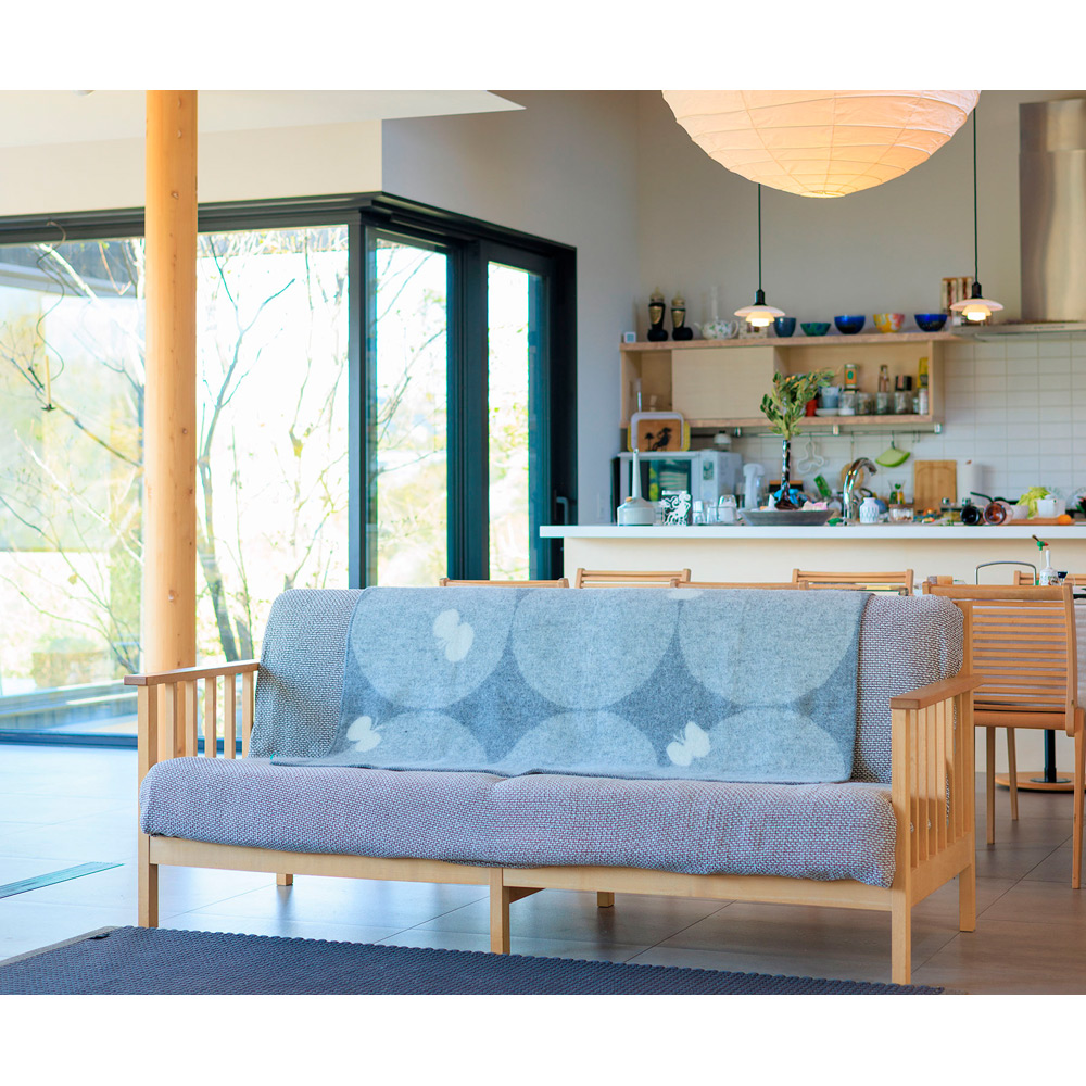 ペルホネンとは、フィンランド語で”ちょうちょ”のこと。まさにブランドを象徴するような一枚で、蝶たちが語らいながら舞う様子がデザインされています。落ち着いたグレー。ハーフサイズは、汎用性の広さが魅力。ソファカバー、ひざ掛け、肌掛けやアウトドアのおでかけなど様々なシーンで活躍。お昼寝ブランケットにもおすすめなサイズです。原産国:ラトビア