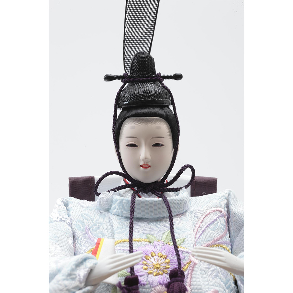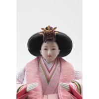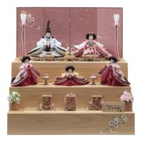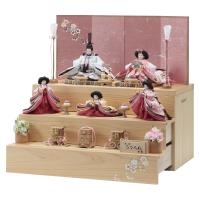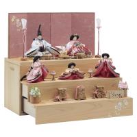 桧を素材とした収納箱に可愛らしい色合いのお雛様をセット。省スペースかつ豪華な収納タイプの五人飾りです。