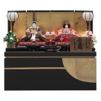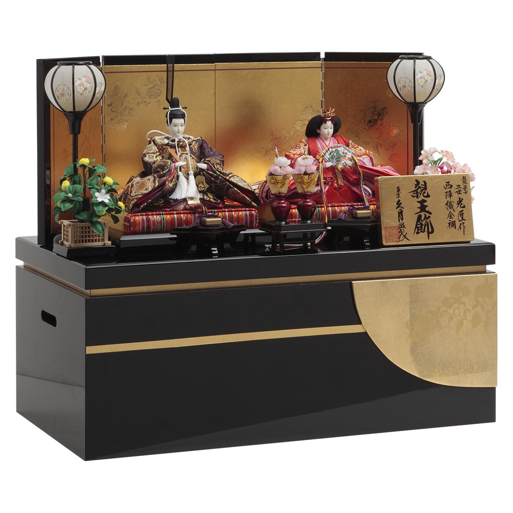 西陣織を使用した煌びやかなお雛様。気品あふれる収納箱に合わせお人形を引き立てます。
