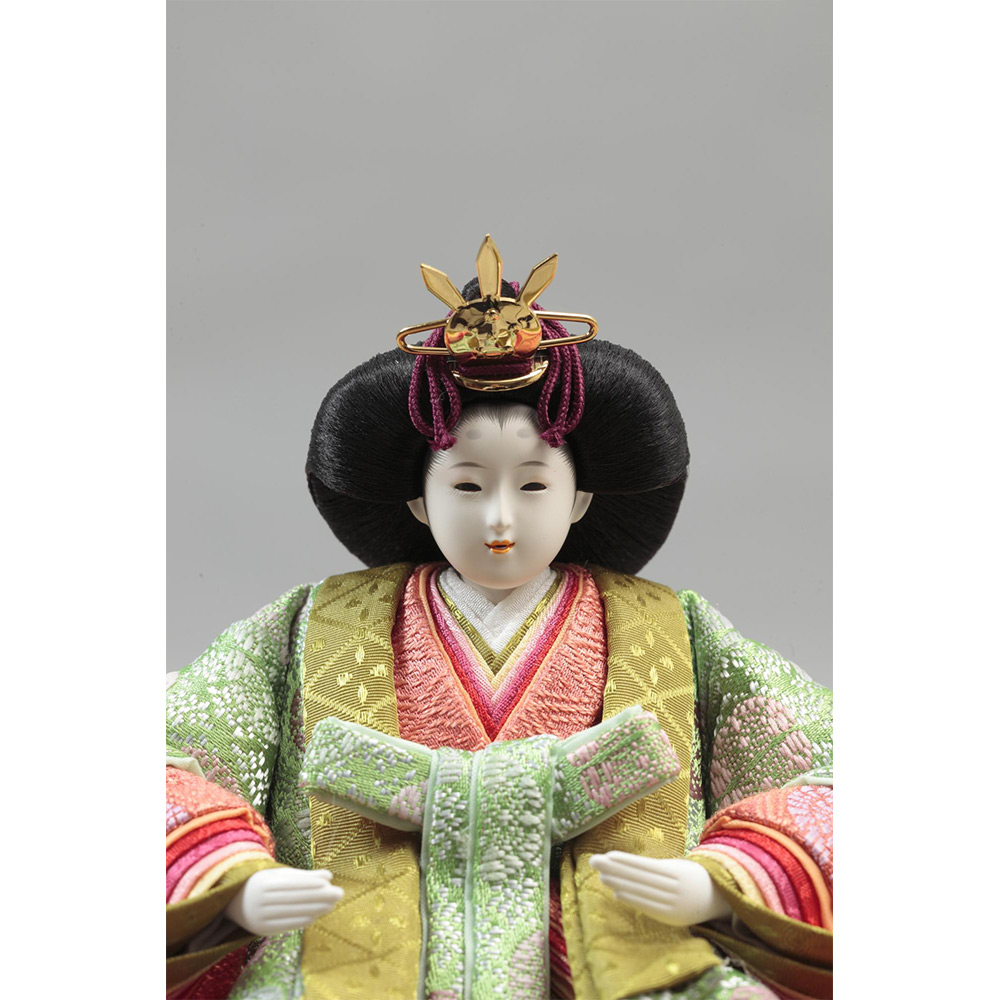 可愛らしいお人形を華やかで重厚感ある収納箱にセットしたお雛様。
