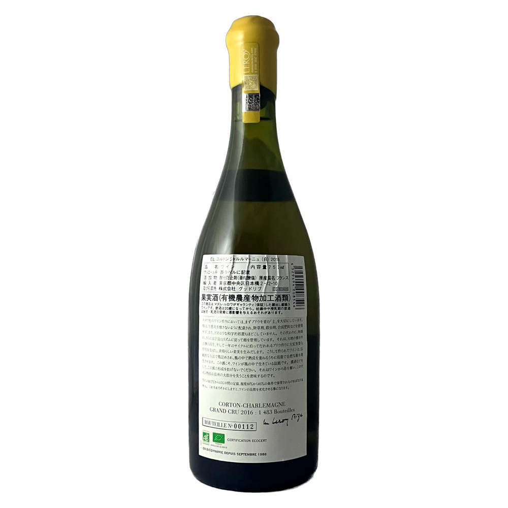2016 コルトン シャルルマーニュ (白) 750ml × 1本
