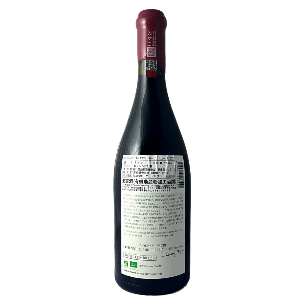 2017 ヴォルネイ プルミエクリュ サントノ デュ ミリュー (赤) 750ml × 1本