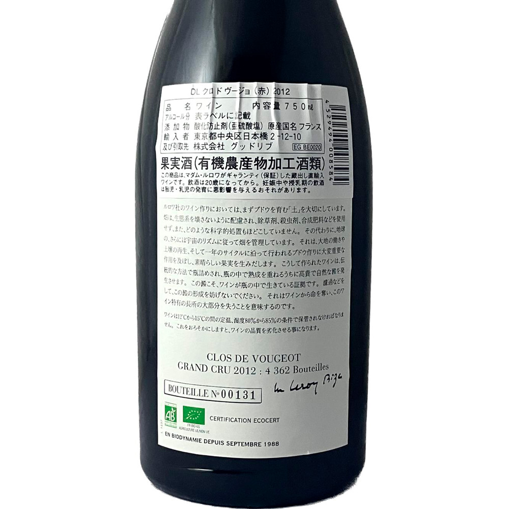 2012 クロ ド ヴージョ(赤) 750ml × 1本