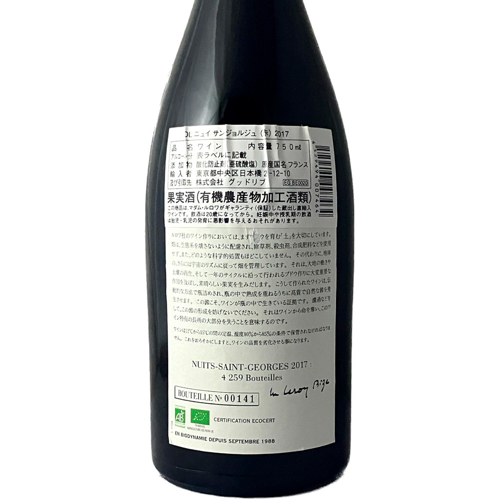 2017 ニュイ サン ジョルジュ(赤) 750ml × 1本