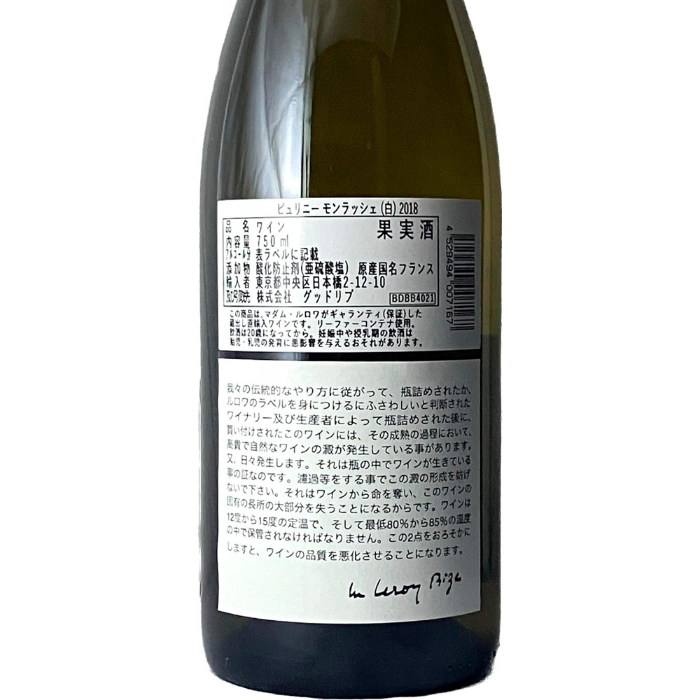 2018 ピュリニー モンラッシェ(白) 750ml × 1本