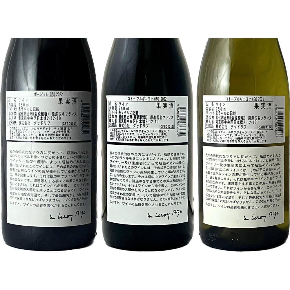 2022 ボージョレ(赤)、2022 コトー ブルギニヨン(赤)、2021 コトー ブルギニヨン(白)