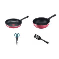 <セット内容>クランベリーレッド マルチパン 22cm×1、クランベリーレッド フライパン 26cm×1、フレッシュキッチン キッチンシザーズ×1、エピス ミニターナー×1