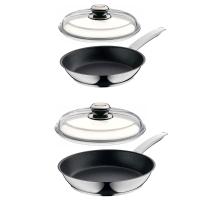 フライパン2サイズにそれぞれガラス蓋をセットしたWMFの福箱です。IH(電磁調理器)使用可能。