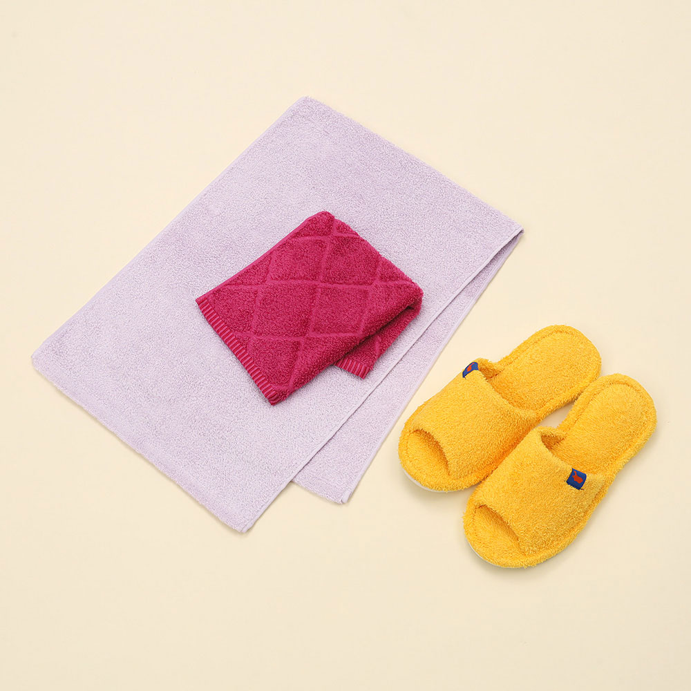 <セット内容>ウォッシュタオル×1、フェイスタオル×1、スリッパ×1
