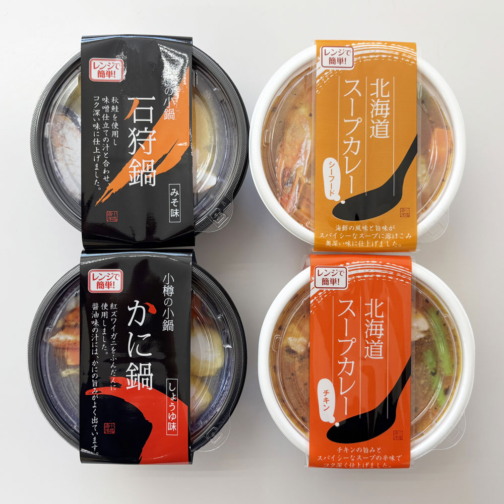 小樽の小鍋(石狩鍋280g・かに鍋280g)、スープカレー(チキン300g・シーフード300g)