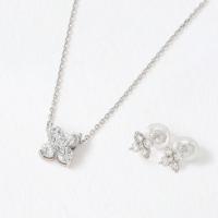 ダイヤモンドを5石使用したシンプルなデザインのペンダントとピアスのセットです。ダイヤモンドの輝きが装いに華やかさをプラスしてくれます。