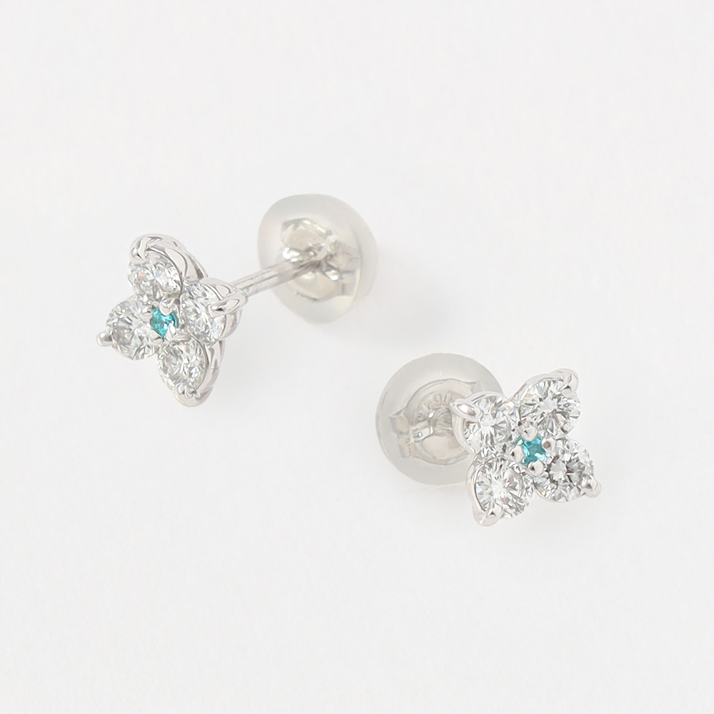 ラッキーアイテムとしても人気の四葉のクローバーを冠したデザインのジュエリーセットです。中央には希少石と言われているパライバトルマリンをセッティングし、まわりをダイヤモンド4石で取り囲んだデザインです。ダイヤモンドの輝きが装いに華やかさをプラスしてくれます。