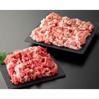 国内産黒毛和牛のこま切れと国産豚肉のこま切れをお得なセットにしました。